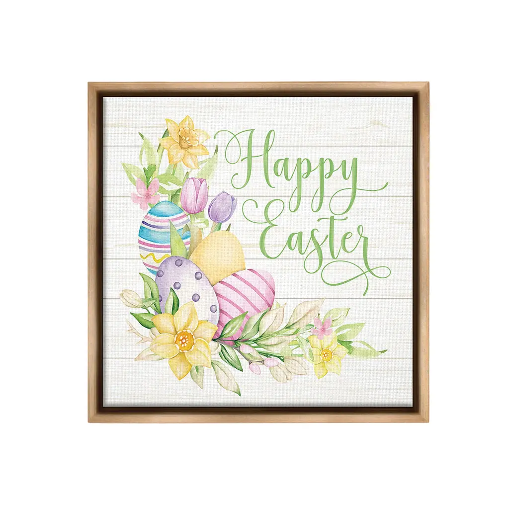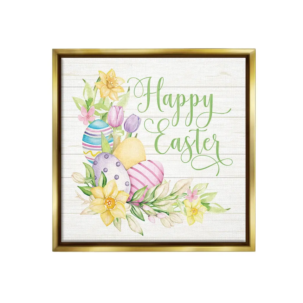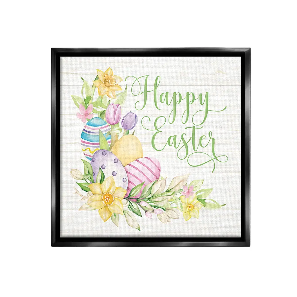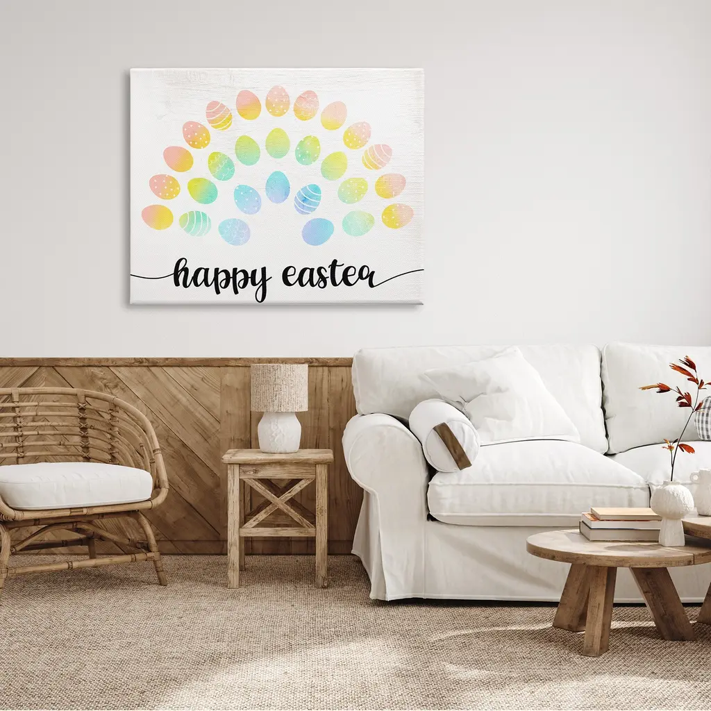 Stupell Happy Easter Phrase Patterned Egg Rainbow Canvas Wall Art - Multi-Color - 48 X 36