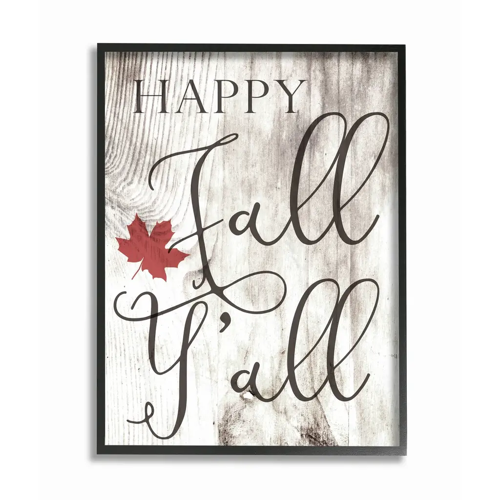 Stupell Happy Fall Y'all Typography Sign Black Framed, 24 X 30, Design By Artist Daphne Polselli - 24 X 30 - 24 X 30 - Wood - Black