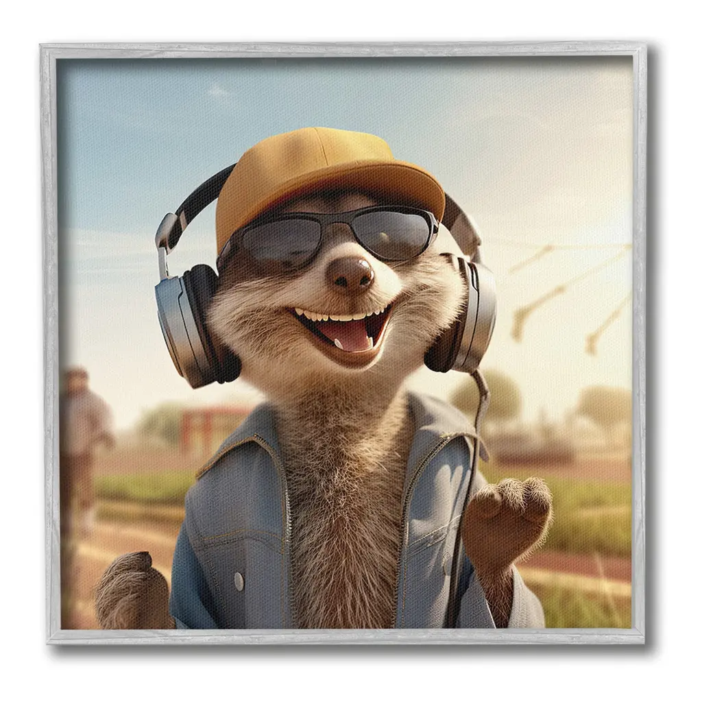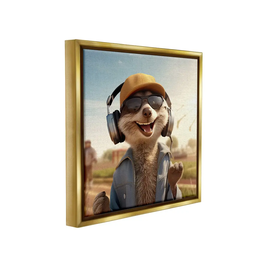 Elevate your home or office to the next level with Stupell Framed Floating Canvas Wall Art. Our premium hand-stretched canvas is mounted securely into a sturdy lightweight frame. The museum-style gap between the wrapped canvas and the box frame gives the illusion of floating artwork. Stupell Wall Art is made in the USA.Features: Dimensions: 18 x 1.7 x 18 Frame, 17 x 1.5 x 17 Canvas ArtFloating Frame Canvas Products are available in sizes 18"x18" and 25"x25". All Floating Frame Canvas Products have a 1.7" Depth.Wall Art is Ready to Hang with Hardware Free Hanging. No Installation required. For Easy Set Up Lean or Layer Artwork on Shelf or Against Wall. Artwork is Permently Fixed into the Frame.Our elevated 1.7" Thick Floating Frame is the perfect complement to our canvas style Wall Art. We use only the highest quality inks in house with industry leading printing solutions. Canvas is hand stretched over a durable wood foundation and then mounted securly into a Modern Box Frame. Made in the USA.Artwork Relates To: Headphones, Happy, Animal, Mammal, Laughing, Smile, Wildlife, Landscape, Humor, Funny, Raccoon, Fox, MusicDesign by Jim Baldwin