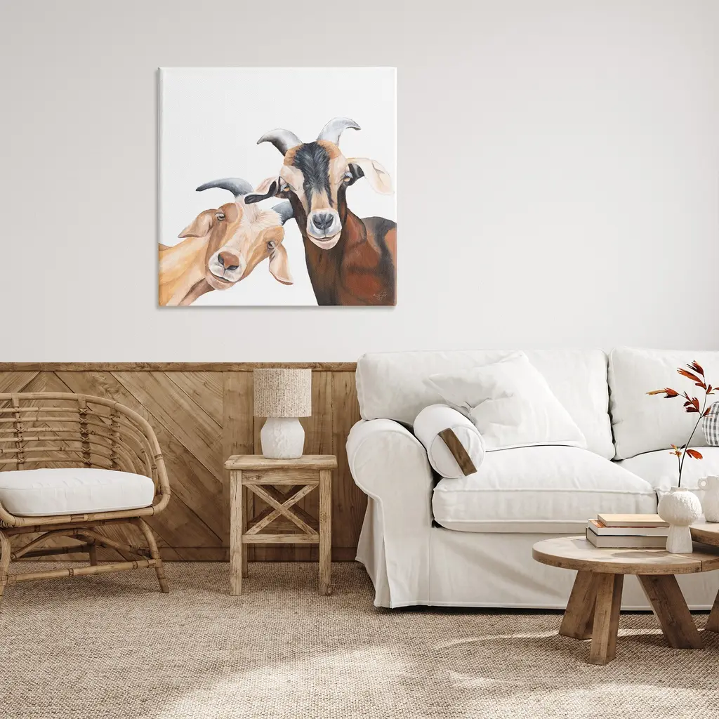 Proudly made in the USA, Our stretched canvas is created with the highest standards. We use only the highest quality inks and canvas on our in house Mimaki printers, and then hand cut and stretch each piece over a 1.5 inch thick wooden frame for hanging. The art comes ready to hang with no installation required.Features: Dimensions: 17 x 1.5 x 17 InchesStretched Canvas Sizes Include Standard: 17 x 1.5 x 17 Large: 24 x 1.5 x 24 X-Large: 30 x 1.5 x 30 Oversized: 36 x 1.5 x 36Wall Art is Ready to Hang - No Installation or Hardware Needed. For Easy Set Up Lean or Layer Artwork on Shelf or Against Wall.Our stretched canvas is created with the highest standards. We use only the highest quality inks and canvas on our in house Mimaki printers, and then hand cut and stretch each piece over a 1.5 inch thick wooden frame for hanging. Made In USA.Artwork Relates To: Mammal, Animal, Wildlife, Goat, Farm AnimalDesign by Diane Fifer