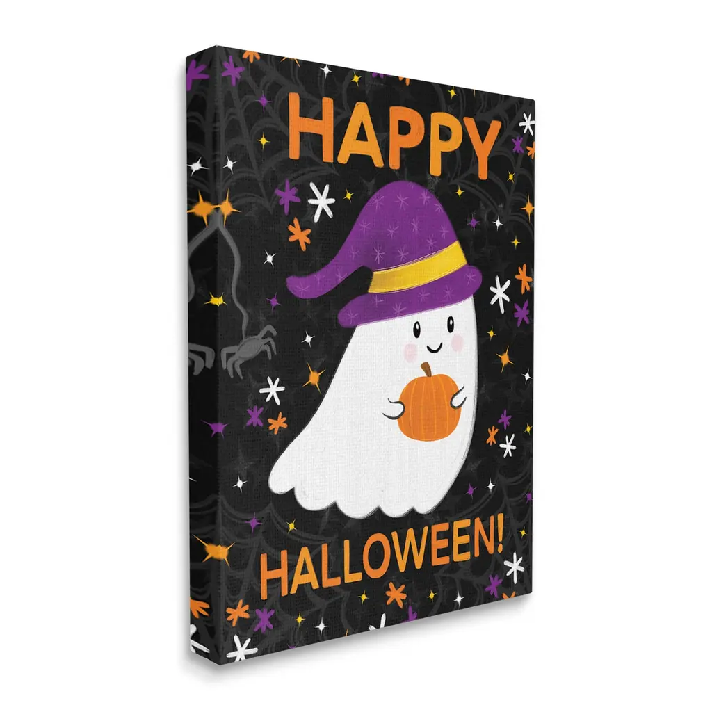 Stupell Happy Halloween Happy Ghost Canvas Wall Art, Design By Emily Cromwell - Multi-Color - 16 X 20