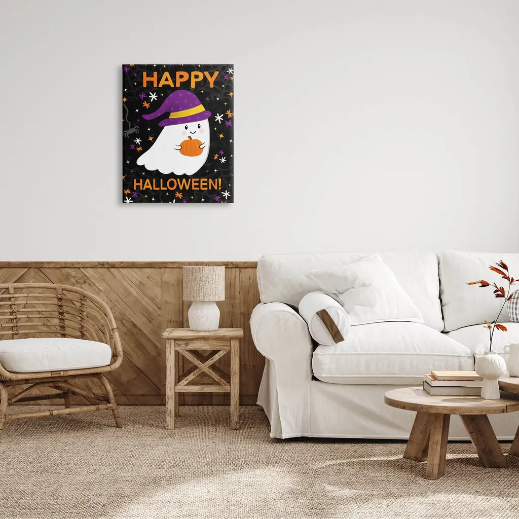 Stupell Happy Halloween Happy Ghost Canvas Wall Art, Design By Emily Cromwell - Multi-Color - 24 X 30