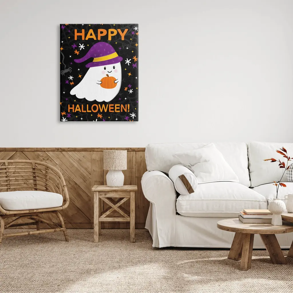 Stupell Happy Halloween Happy Ghost Canvas Wall Art, Design By Emily Cromwell - Multi-Color - 30 X 40