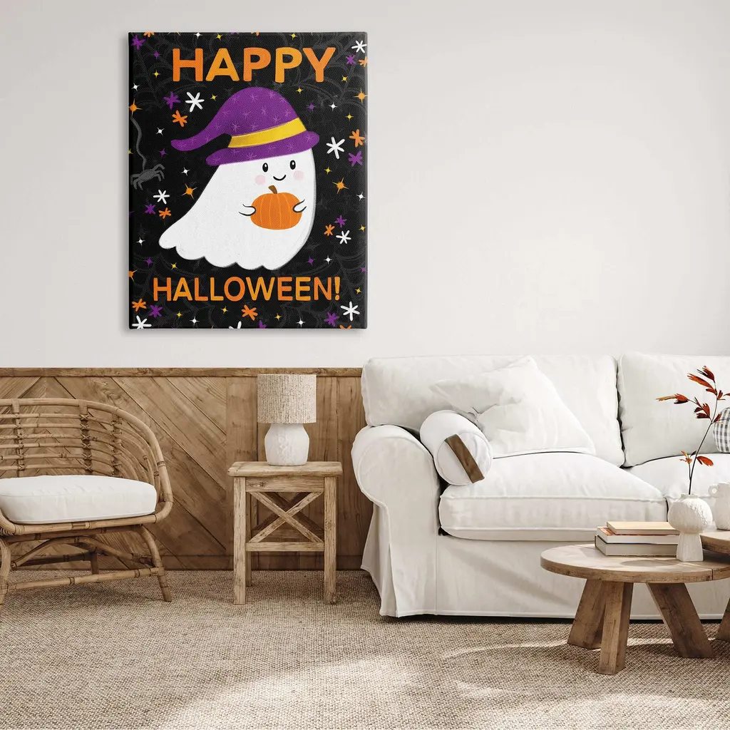 Stupell Happy Halloween Happy Ghost Canvas Wall Art, Design By Emily Cromwell - Multi-Color - 36 X 48