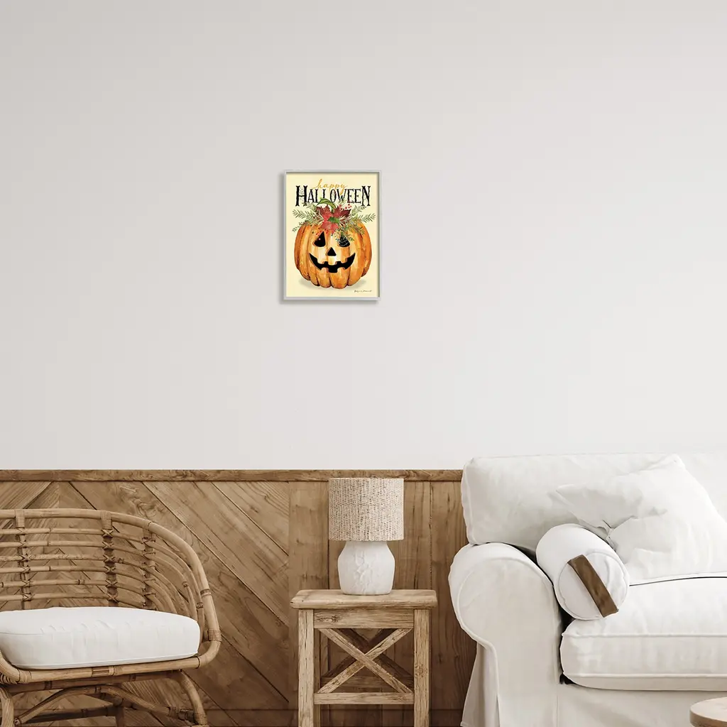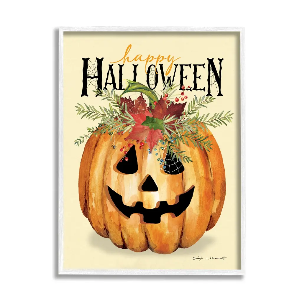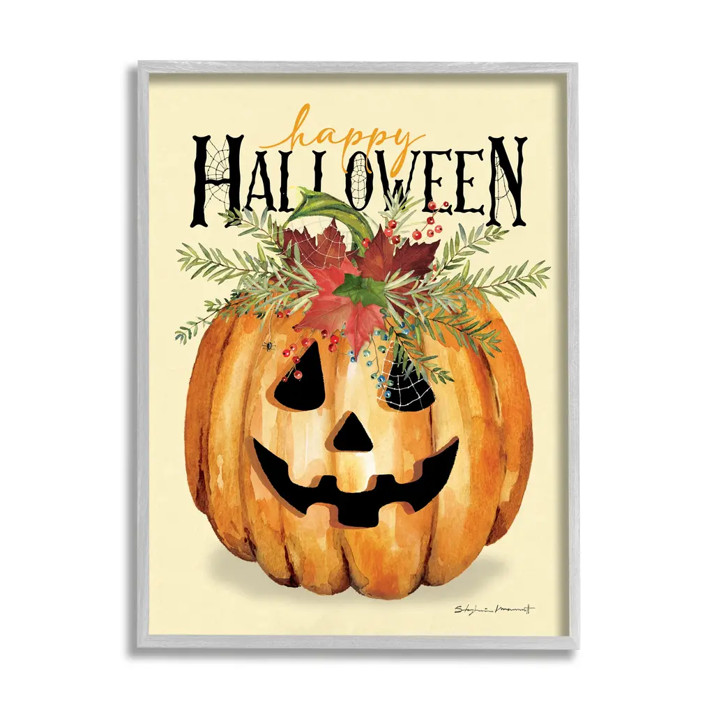 Add dimension to any room with our textured Framed Giclee Artwork. Our framed artwork is securely mounted into a 1.5-inch thick wood grain frame and ready to hang. Frames are available in three alluring styles: black, gray farmhouse and white. In addition, you should check out our oversized options if you want a statement piece. Stupell Wall Art is made in the USA.Features: Dimensions: 11 x 1.5 x 14 FramedFramed Giclee Sizes Include Standard: 11 x 1.5 x 14 Large: 16 x 1.5 x 20 Oversized: 24 x 1.5 x 30Wall Art is Ready to Hang - No Installation or Hardware Needed. For Easy Set Up Lean or Layer Artwork on Shelf or Against Wall.Our giclée prints are carefully mounted on a durable MDF backing, and then perfectly finished in a 1.5 inch thick woodgrain frame. Mounted frame colors include black, gray farmhouse and white. Made In USA.Artwork Relates To: Plant, Halloween, Pumpkin, Seasonal, Botanical, Jack-o-lantern, Spider Web, Happy HalloweenDesign by Stephanie Workman Marrott