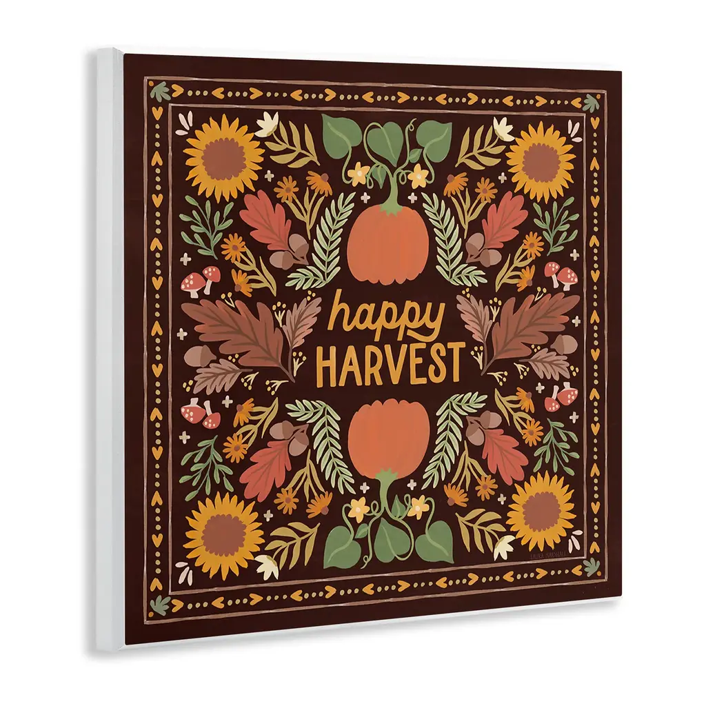 Stupell Happy Harvest On Brown Wall Plaque Art Design By Laura Marshall - 12 X 12