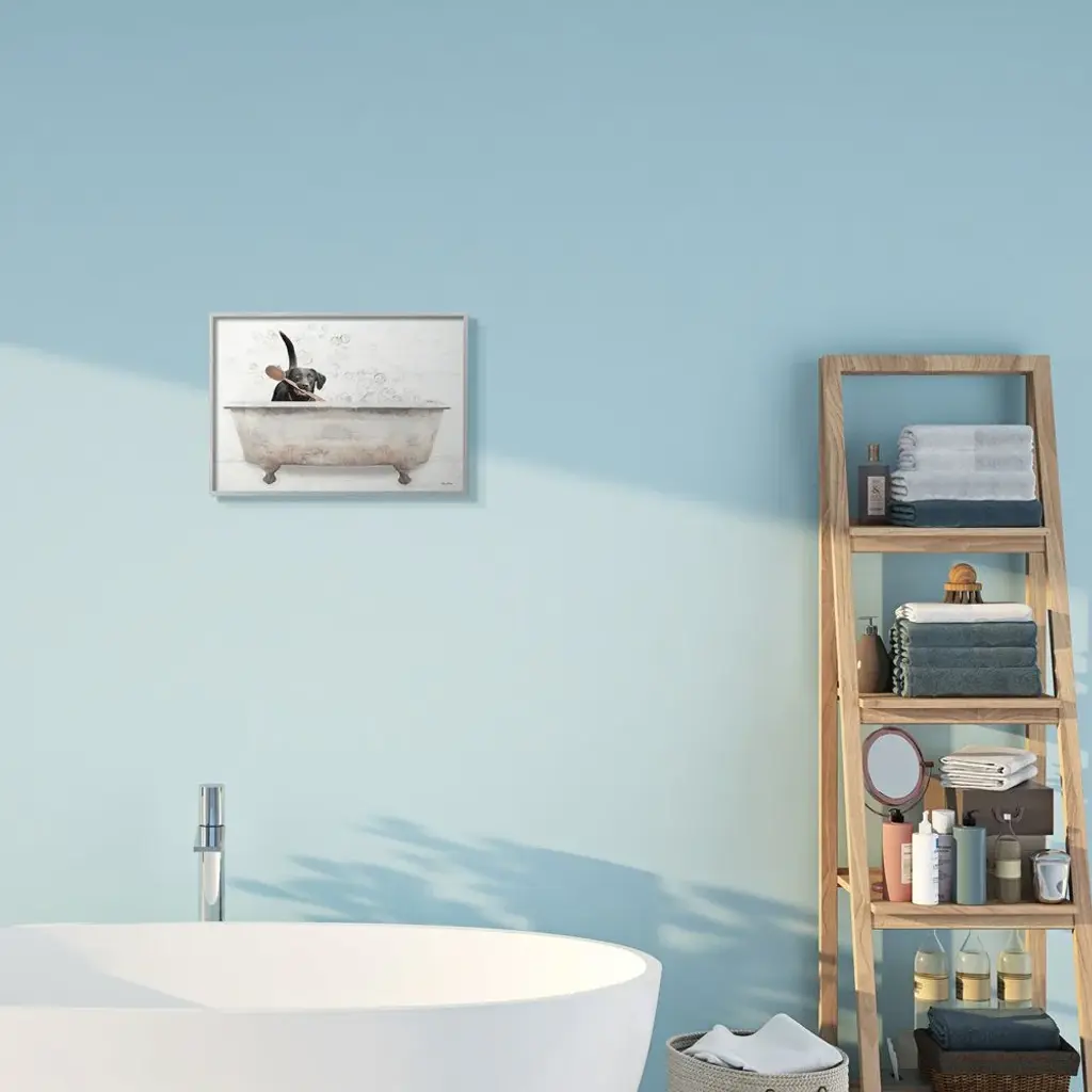 Stupell Happy Labrador In Rustic Bubble Bath Design Framed Wall Art - Multi-Color - 11 X 14 - Grey