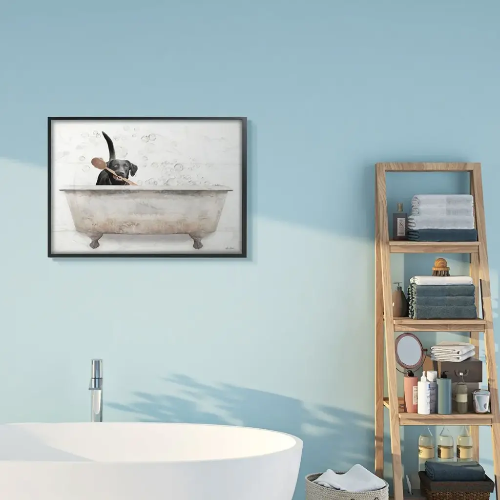 Stupell Happy Labrador In Rustic Bubble Bath Design Framed Wall Art - Multi-Color - 11 X 14 - White