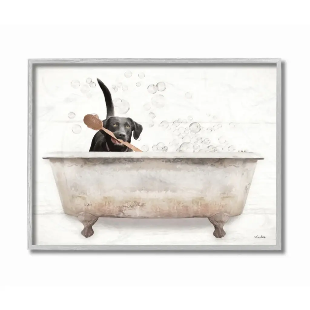 Stupell Happy Labrador In Rustic Bubble Bath Design Framed Wall Art - Multi-Color - 16 X 20 - Grey