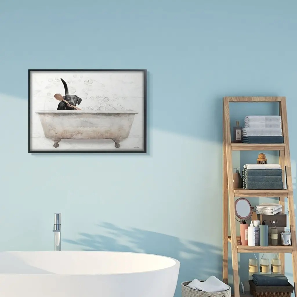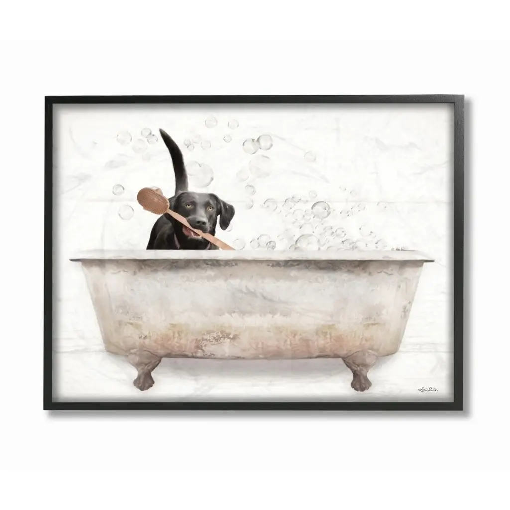 Stupell Happy Labrador In Rustic Bubble Bath Design Framed Wall Art - Multi-Color - 24 X 30 - Grey