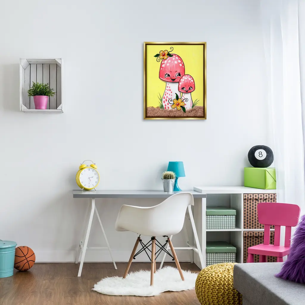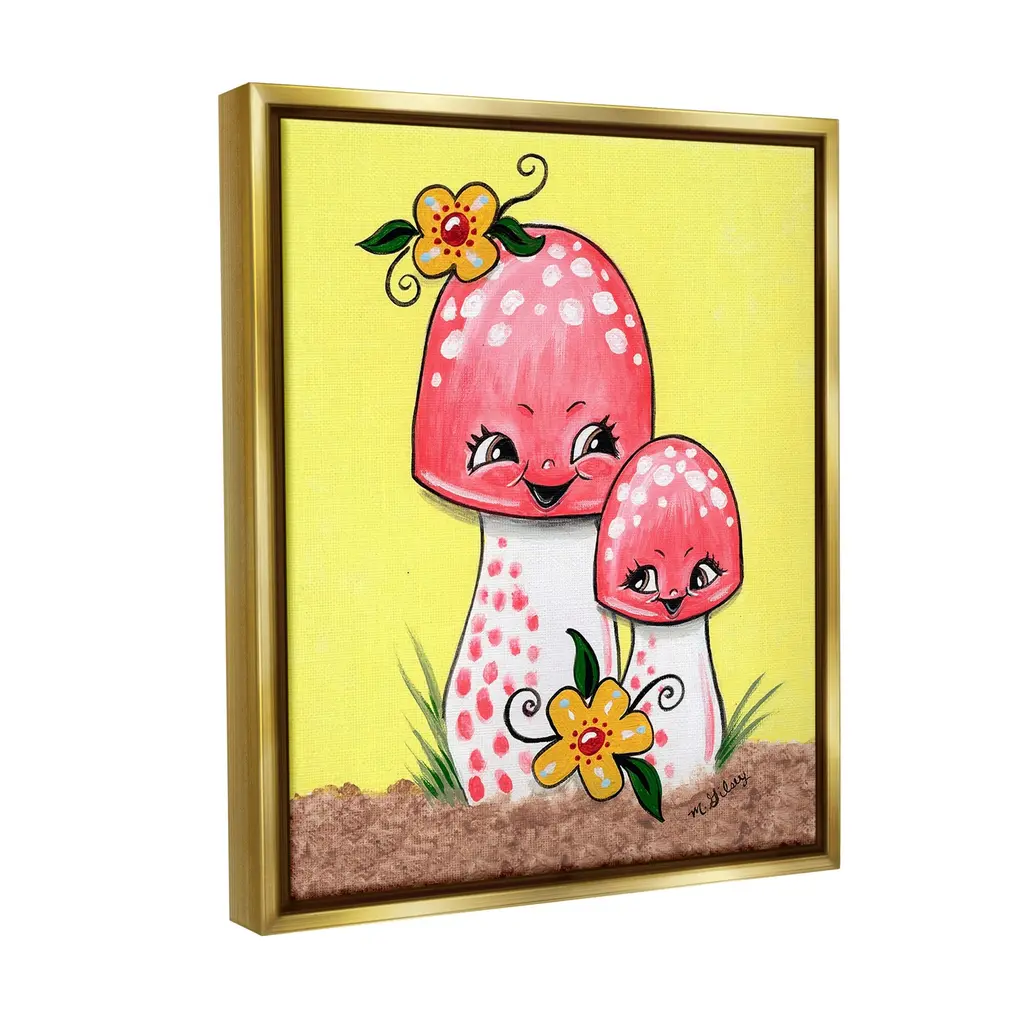 Stupell Happy Mushrooms & Flowers Framed Floater Canvas Wall Art Design By Michelle Gilsey - 25 X 31 - Gold