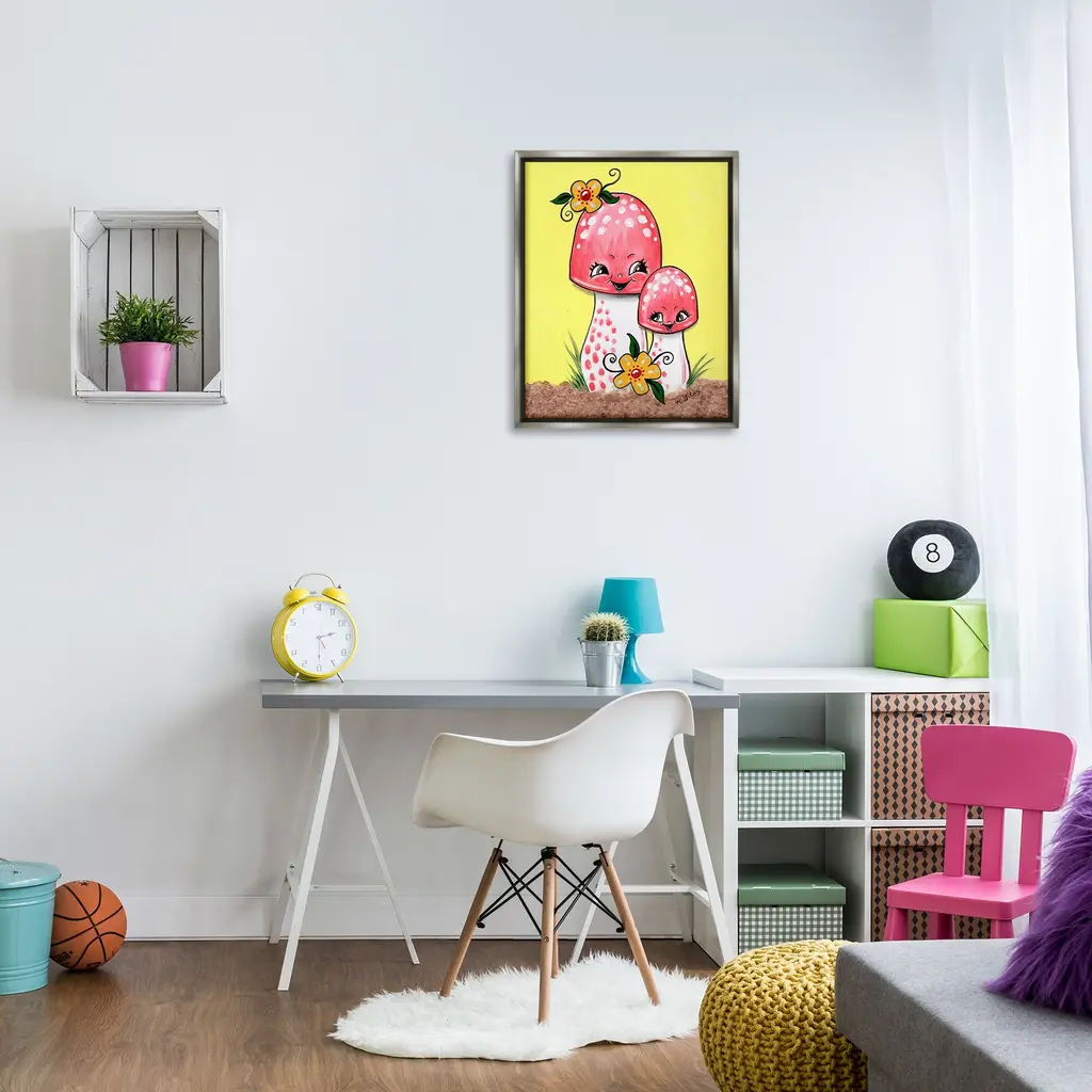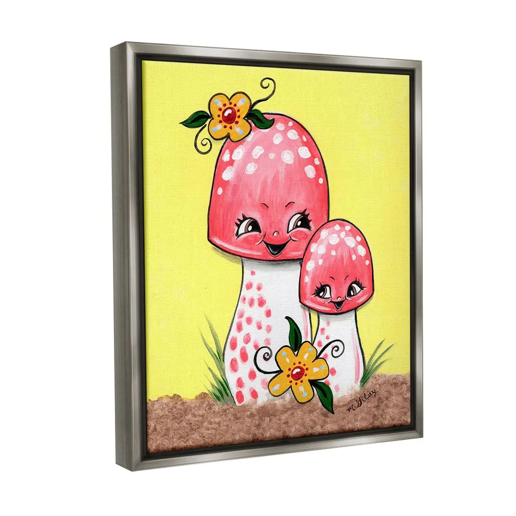 Stupell Happy Mushrooms & Flowers Framed Floater Canvas Wall Art Design By Michelle Gilsey - 25 X 31 - Grey