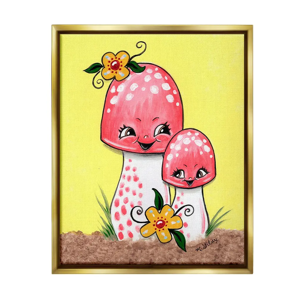Stupell Happy Mushrooms & Flowers Framed Giclee Art Design By Michelle Gilsey - 24 X 30 - Grey