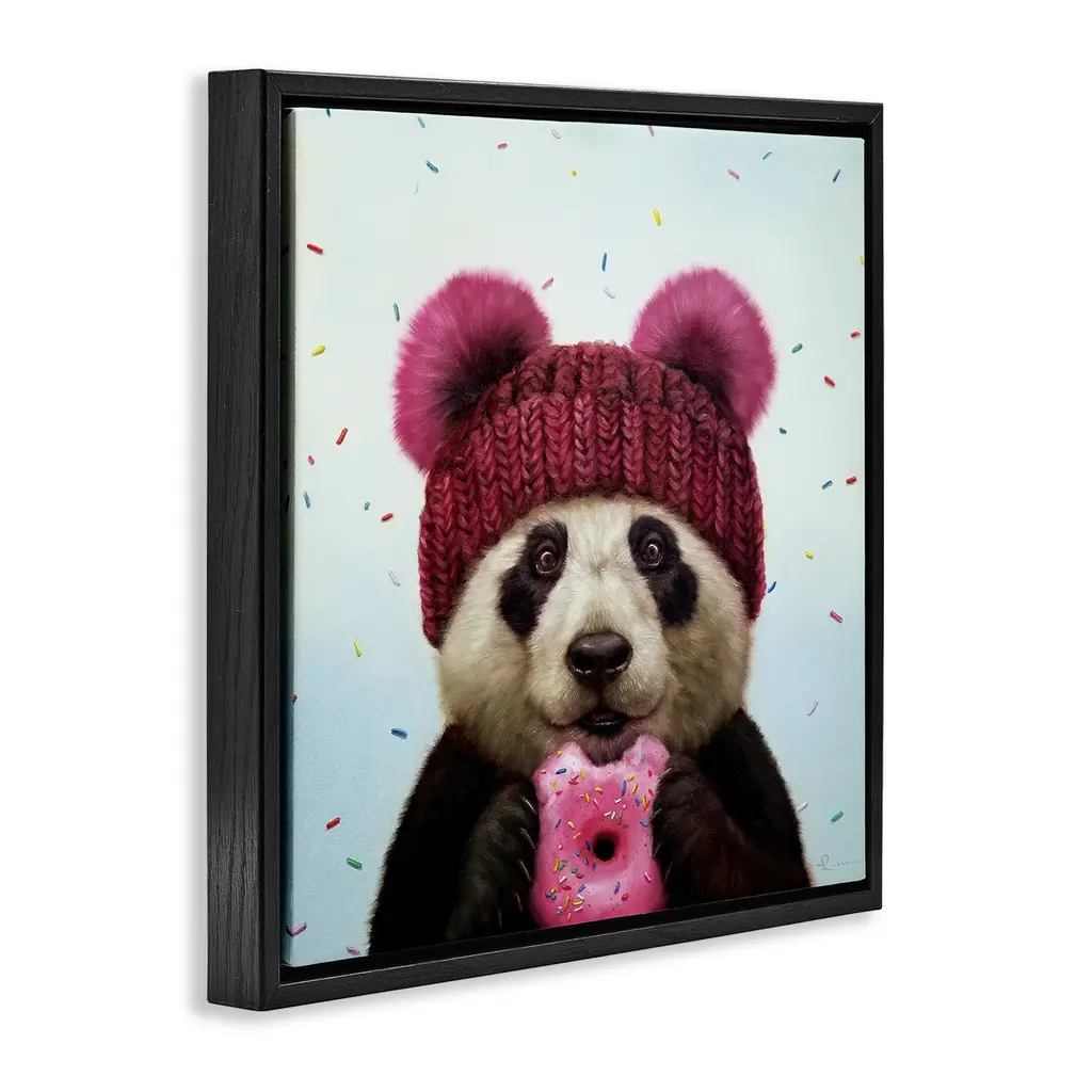 Elevate your home or office to the next level with Stupell Framed Floating Canvas Wall Art. Our premium hand-stretched canvas is mounted securely into a sturdy lightweight frame. The museum-style gap between the wrapped canvas and the box frame gives the illusion of floating artwork. Stupell Wall Art is made in the USA.Features: Dimensions: 18 x 1.7 x 18 Frame, 17 x 1.5 x 17 Canvas ArtFloating Frame Canvas Products are available in sizes 18"x18" and 25"x25". All Floating Frame Canvas Products have a 1.7" Depth.Wall Art is Ready to Hang with Hardware Free Hanging. No Installation required. For Easy Set Up Lean or Layer Artwork on Shelf or Against Wall. Artwork is Permently Fixed into the Frame.Our elevated 1.7" Thick Floating Frame is the perfect complement to our canvas style Wall Art. We use only the highest quality inks in house with industry leading printing solutions. Canvas is hand stretched over a durable wood foundation and then mounted securly into a Modern Box Frame. Made in the USA.Artwork Relates To: Animal, Portrait, Humor, Donut, Food, Dessert, Panda BearDesign by Lucia Heffernan