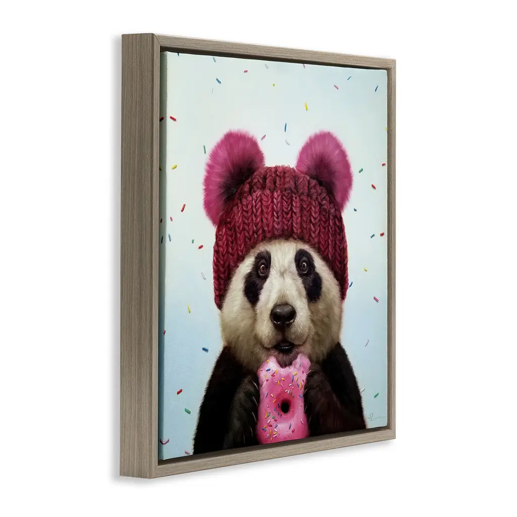 Elevate your home or office to the next level with Stupell Framed Floating Canvas Wall Art. Our premium hand-stretched canvas is mounted securely into a sturdy lightweight frame. The museum-style gap between the wrapped canvas and the box frame gives the illusion of floating artwork. Stupell Wall Art is made in the USA.Features: Dimensions: 18 x 1.7 x 18 Frame, 17 x 1.5 x 17 Canvas ArtFloating Frame Canvas Products are available in sizes 18"x18" and 25"x25". All Floating Frame Canvas Products have a 1.7" Depth.Wall Art is Ready to Hang with Hardware Free Hanging. No Installation required. For Easy Set Up Lean or Layer Artwork on Shelf or Against Wall. Artwork is Permently Fixed into the Frame.Our elevated 1.7" Thick Floating Frame is the perfect complement to our canvas style Wall Art. We use only the highest quality inks in house with industry leading printing solutions. Canvas is hand stretched over a durable wood foundation and then mounted securly into a Modern Box Frame. Made in the USA.Artwork Relates To: Animal, Portrait, Humor, Donut, Food, Dessert, Panda BearDesign by Lucia Heffernan