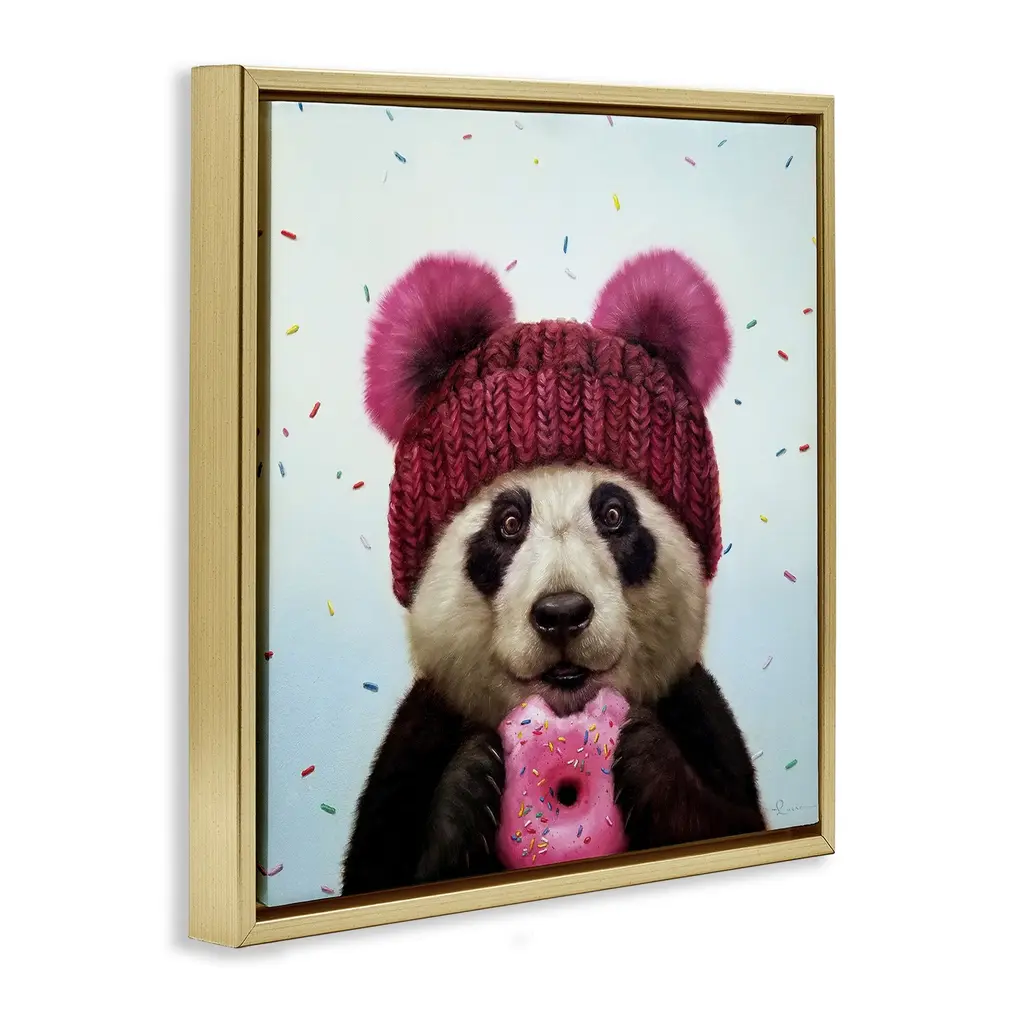 Elevate your home or office to the next level with Stupell Framed Floating Canvas Wall Art. Our premium hand-stretched canvas is mounted securely into a sturdy lightweight frame. The museum-style gap between the wrapped canvas and the box frame gives the illusion of floating artwork. Stupell Wall Art is made in the USA.Features: Dimensions: 18 x 1.7 x 18 Frame, 17 x 1.5 x 17 Canvas ArtFloating Frame Canvas Products are available in sizes 18"x18" and 25"x25". All Floating Frame Canvas Products have a 1.7" Depth.Wall Art is Ready to Hang with Hardware Free Hanging. No Installation required. For Easy Set Up Lean or Layer Artwork on Shelf or Against Wall. Artwork is Permently Fixed into the Frame.Our elevated 1.7" Thick Floating Frame is the perfect complement to our canvas style Wall Art. We use only the highest quality inks in house with industry leading printing solutions. Canvas is hand stretched over a durable wood foundation and then mounted securly into a Modern Box Frame. Made in the USA.Artwork Relates To: Animal, Portrait, Humor, Donut, Food, Dessert, Panda BearDesign by Lucia Heffernan