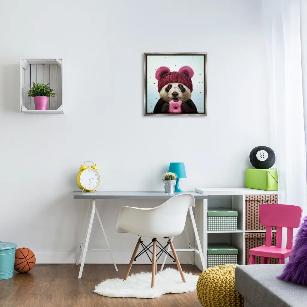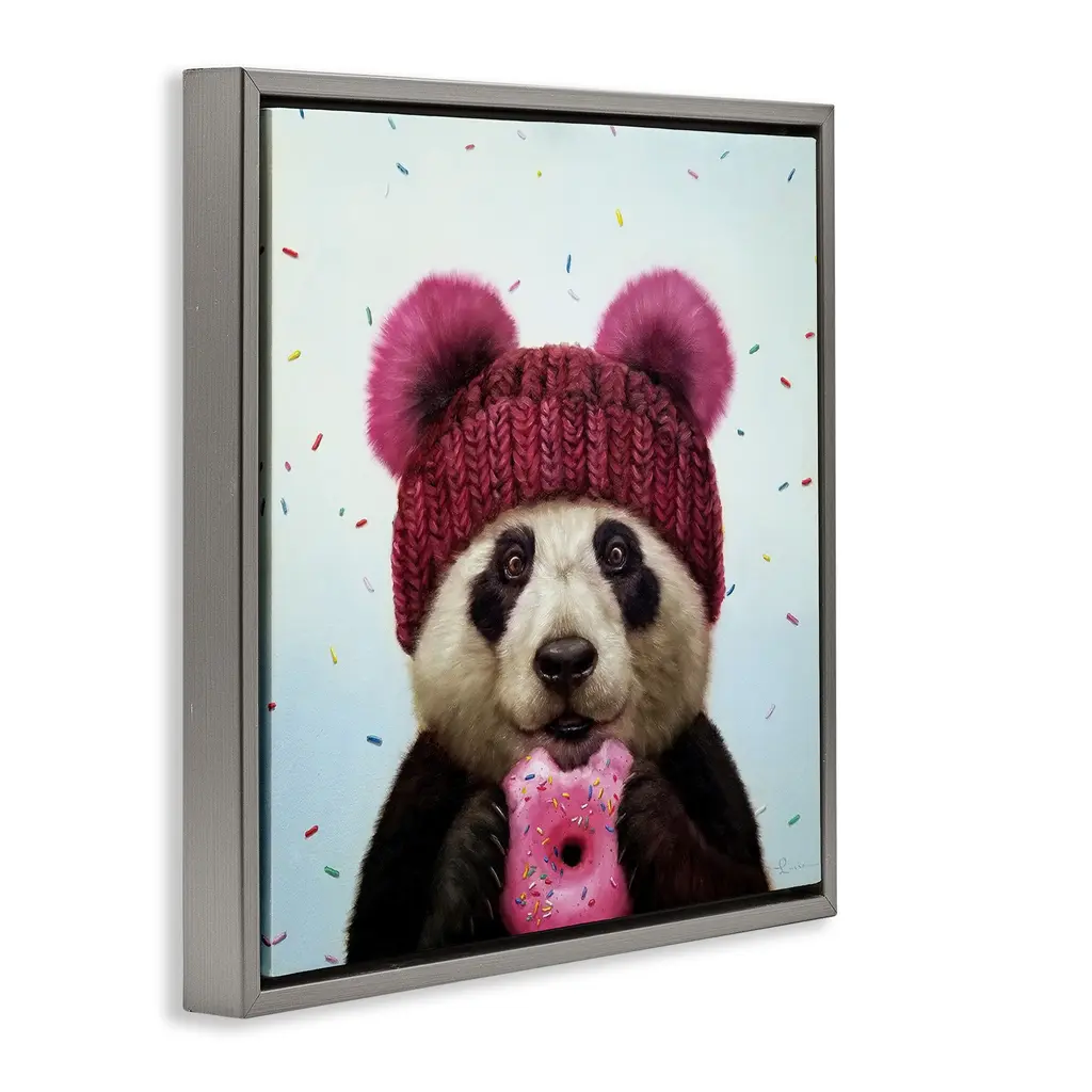 Elevate your home or office to the next level with Stupell Framed Floating Canvas Wall Art. Our premium hand-stretched canvas is mounted securely into a sturdy lightweight frame. The museum-style gap between the wrapped canvas and the box frame gives the illusion of floating artwork. Stupell Wall Art is made in the USA.Features: Dimensions: 18 x 1.7 x 18 Frame, 17 x 1.5 x 17 Canvas ArtFloating Frame Canvas Products are available in sizes 18"x18" and 25"x25". All Floating Frame Canvas Products have a 1.7" Depth.Wall Art is Ready to Hang with Hardware Free Hanging. No Installation required. For Easy Set Up Lean or Layer Artwork on Shelf or Against Wall. Artwork is Permently Fixed into the Frame.Our elevated 1.7" Thick Floating Frame is the perfect complement to our canvas style Wall Art. We use only the highest quality inks in house with industry leading printing solutions. Canvas is hand stretched over a durable wood foundation and then mounted securly into a Modern Box Frame. Made in the USA.Artwork Relates To: Animal, Portrait, Humor, Donut, Food, Dessert, Panda BearDesign by Lucia Heffernan