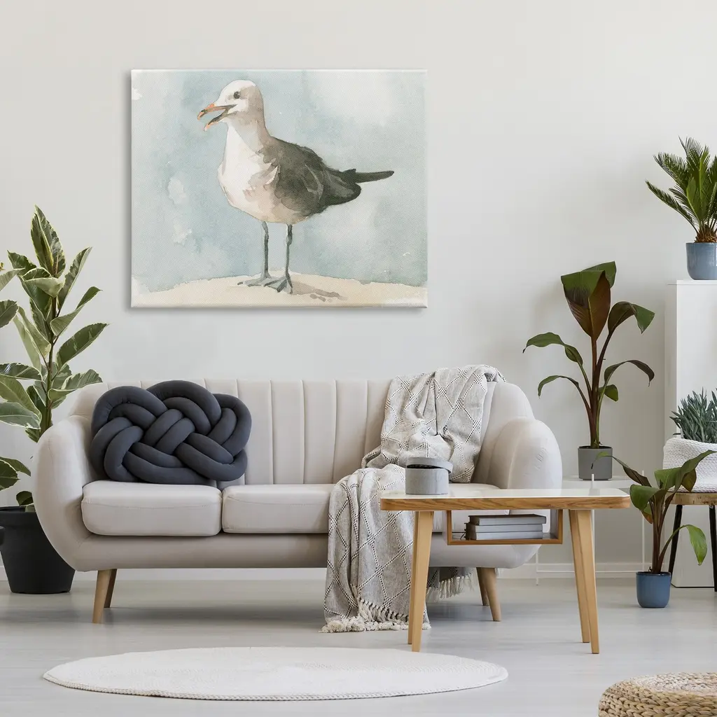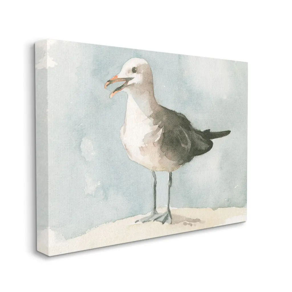 Stupell Happy Seagull Soft Focus Resting On Beach Canvas Wall Art - Grey - 16 X 20