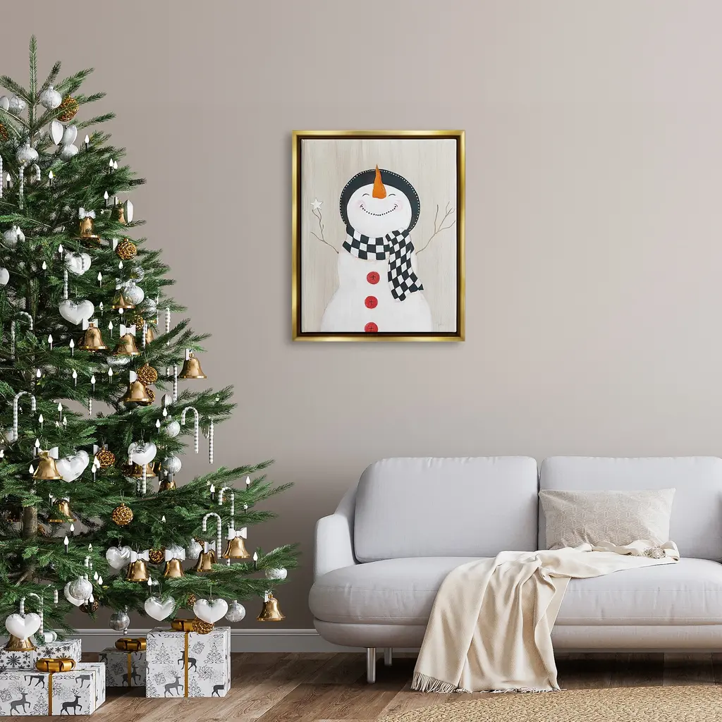 Elevate your home or office to the next level with Stupell Framed Floating Canvas Wall Art. Our premium hand-stretched canvas is mounted securely into a sturdy lightweight frame. The museum-style gap between the wrapped canvas and the box frame gives the illusion of floating artwork. Stupell Wall Art is made in the USA.Features: Dimensions: 17 x 1.7 x 21 Frame, 16 x 1.5 x 20 Canvas ArtFloating Frame Sizes Include Standard: 17 x 1.7 x 21 Oversized: 25 x 1.7 x 31Wall Art is Ready to Hang - No Installation or Hardware Needed. For Easy Set Up Lean or Layer Artwork on Shelf or Against Wall.Our elevated 1.7" Thick Floating Frame is the perfect complement to our canvas style Wall Art. We use only the highest quality inks in house with industry leading printing solutions. Canvas is hand stretched over a durable wood foundation and then mounted securly into a Modern Box Frame. Made in the USA.Artwork Relates To: Snowman, Winter, Seasonal, Snow, HolidayDesign by Janet Tava