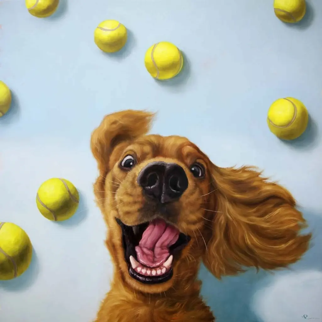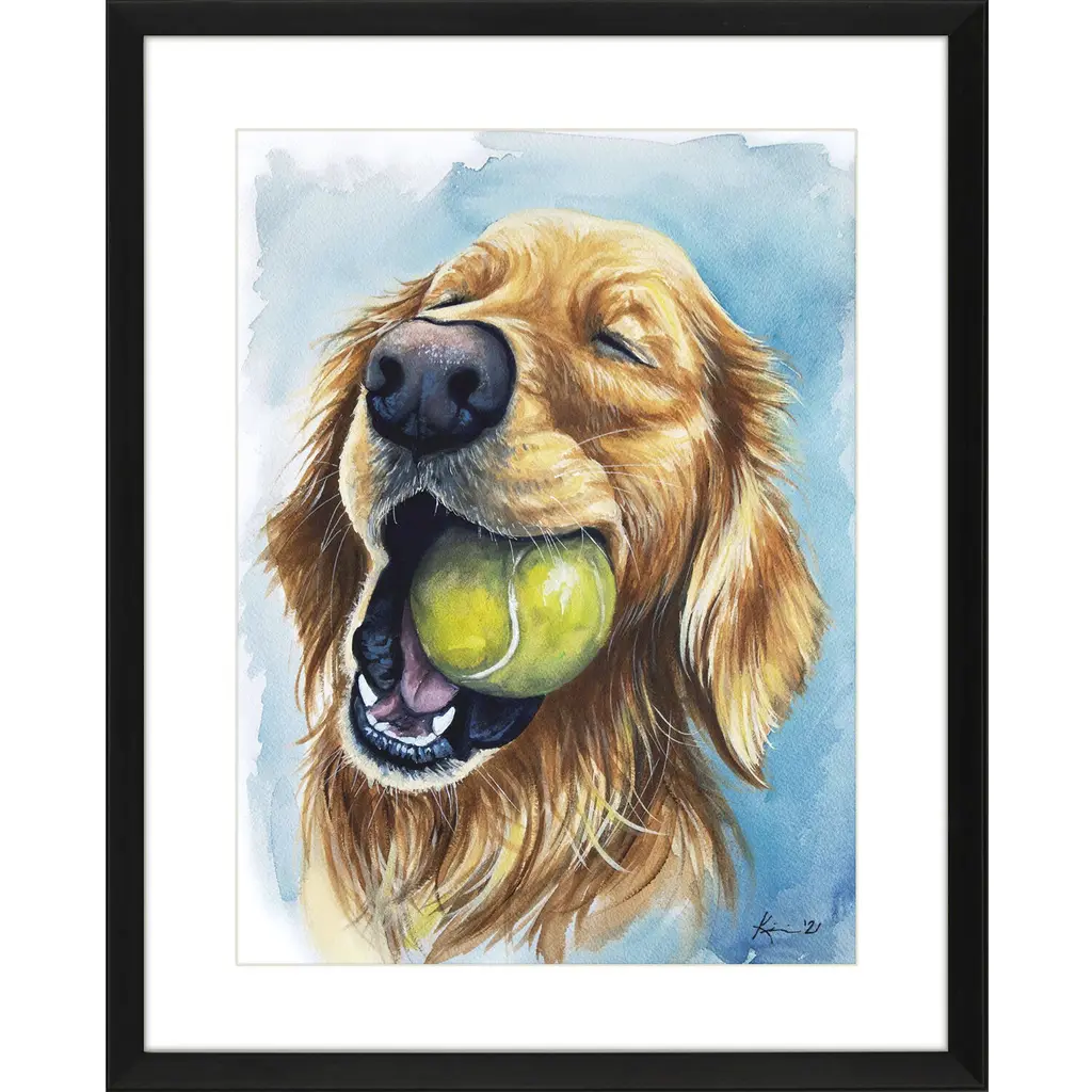 Stupell Happy Smiling Pet Dog With Yellow Tennis Balls Framed Wall Art - 17 X 17 - Black