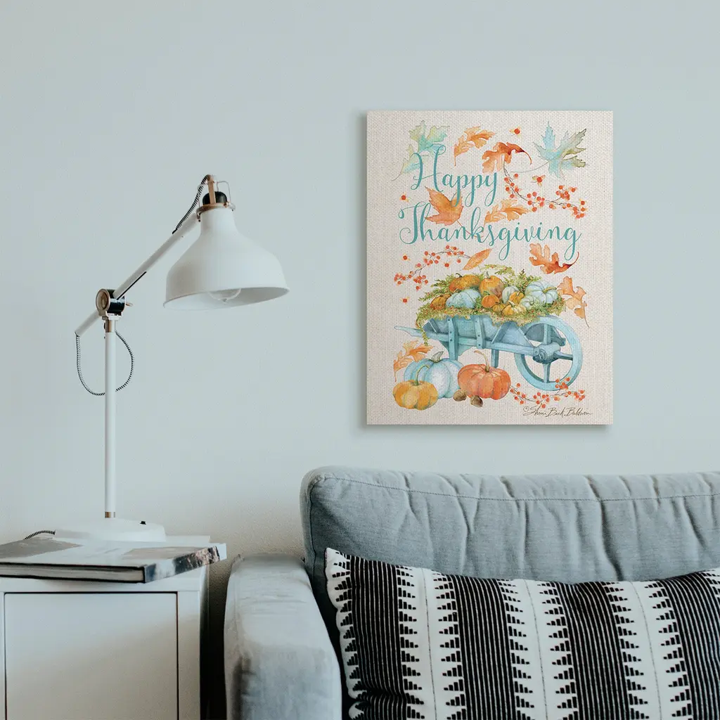 Stupell Happy Thanksgiving Phrase Holiday Pumpkin Wagon Canvas Wall Art - 24 X 30