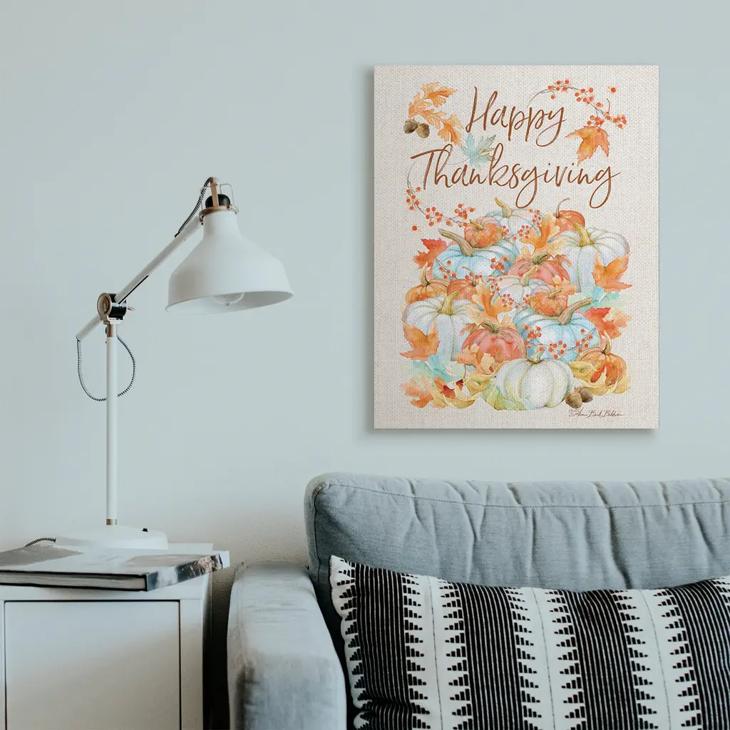 Stupell Happy Thanksgiving Phrase White Autumn Pumpkins Canvas Wall Art - 30 X 40