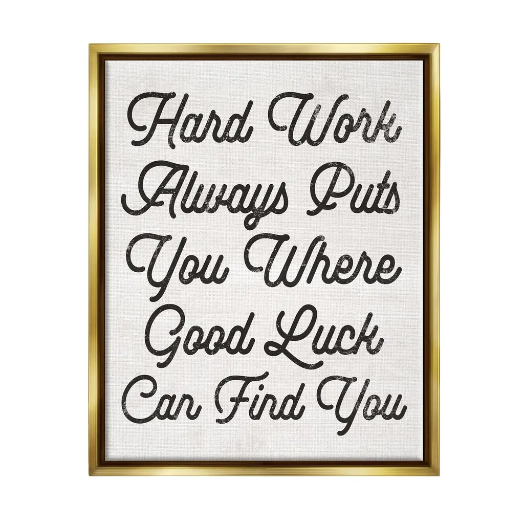 Stupell Hard Work Good Luck Motivational Framed Floater Canvas Wall Art By Lil' Rue - 16 X 20 - Gold