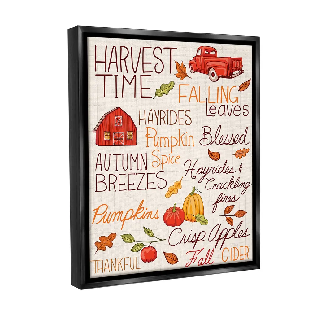 Elevate your home or office to the next level with Stupell Framed Floating Canvas Wall Art. Our premium hand-stretched canvas is mounted securely into a sturdy lightweight frame. The museum-style gap between the wrapped canvas and the box frame gives the illusion of floating artwork. Stupell Wall Art is made in the USA.Features: Dimensions: 17 x 1.7 x 21 Frame, 16 x 1.5 x 20 Canvas ArtFloating Frame Canvas Products are available in sizes 17"x21" and 25"x31". All Floating Frame Canvas Products have a 1.7" Depth.Wall Art is Ready to Hang with Hardware Free Hanging. No Installation required. For Easy Set Up Lean or Layer Artwork on Shelf or Against Wall. Artwork is Permently Fixed into the Frame.Our elevated 1.7" Thick Floating Frame is the perfect complement to our canvas style Wall Art. We use only the highest quality inks in house with industry leading printing solutions. Canvas is hand stretched over a durable wood foundation and then mounted securly into a Modern Box Frame. Made in the USA.Artwork Relates To: Nature, Country, Rural, Farm, Harvest, Plant, Produce, Pumpkin, Vegetable, Barn, Fall, Autumn, PhraseDesign by Diane Labombarbe