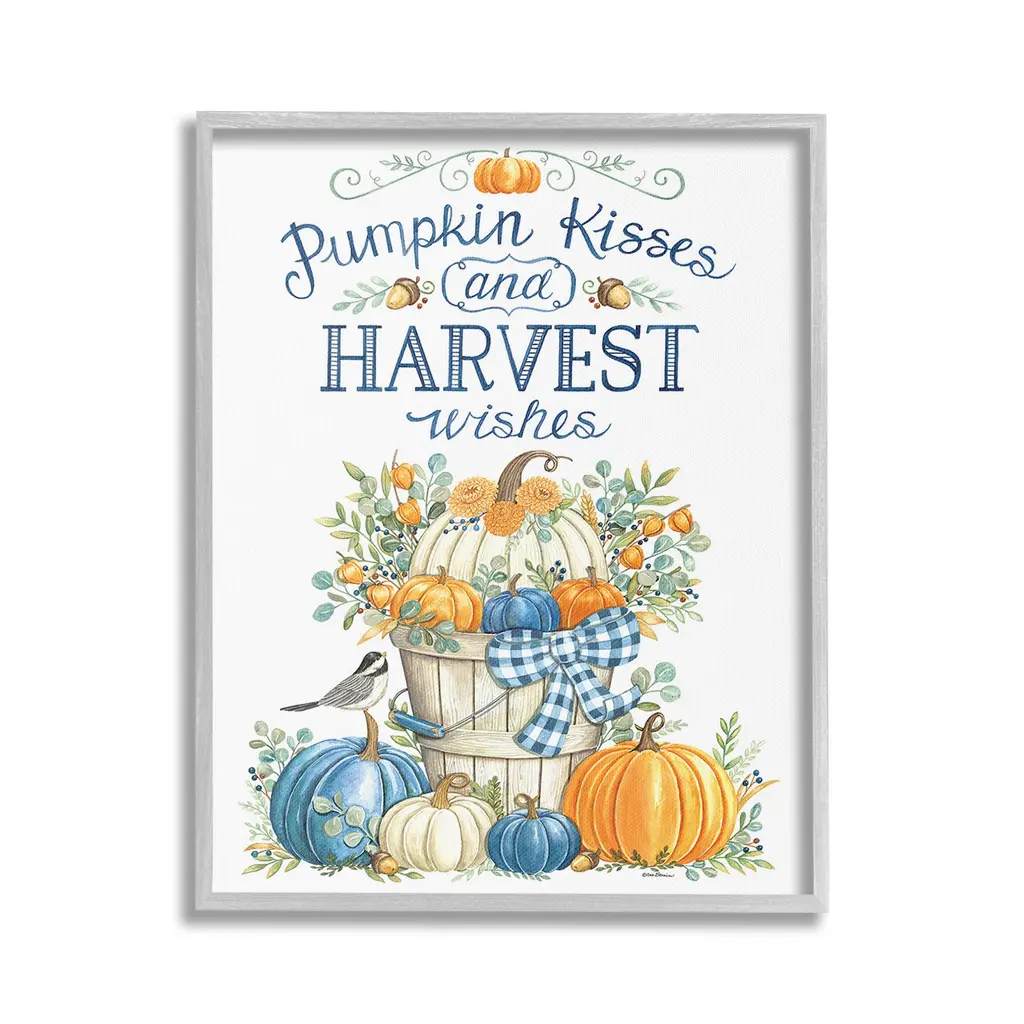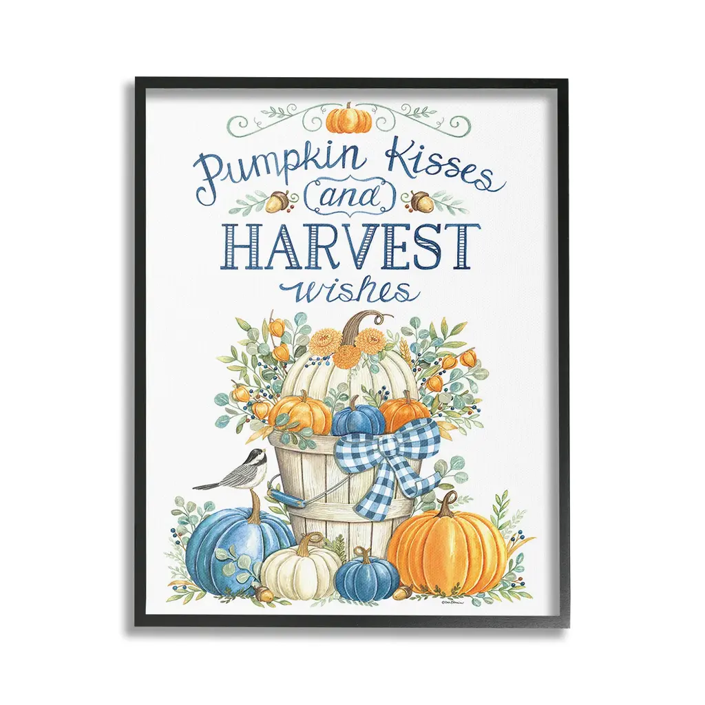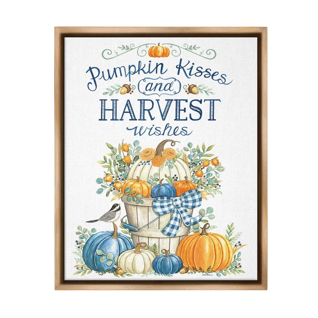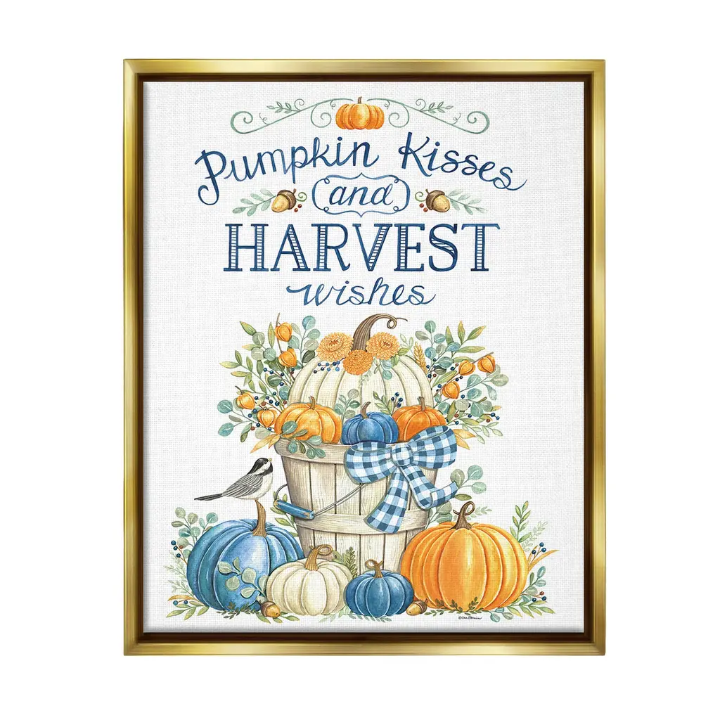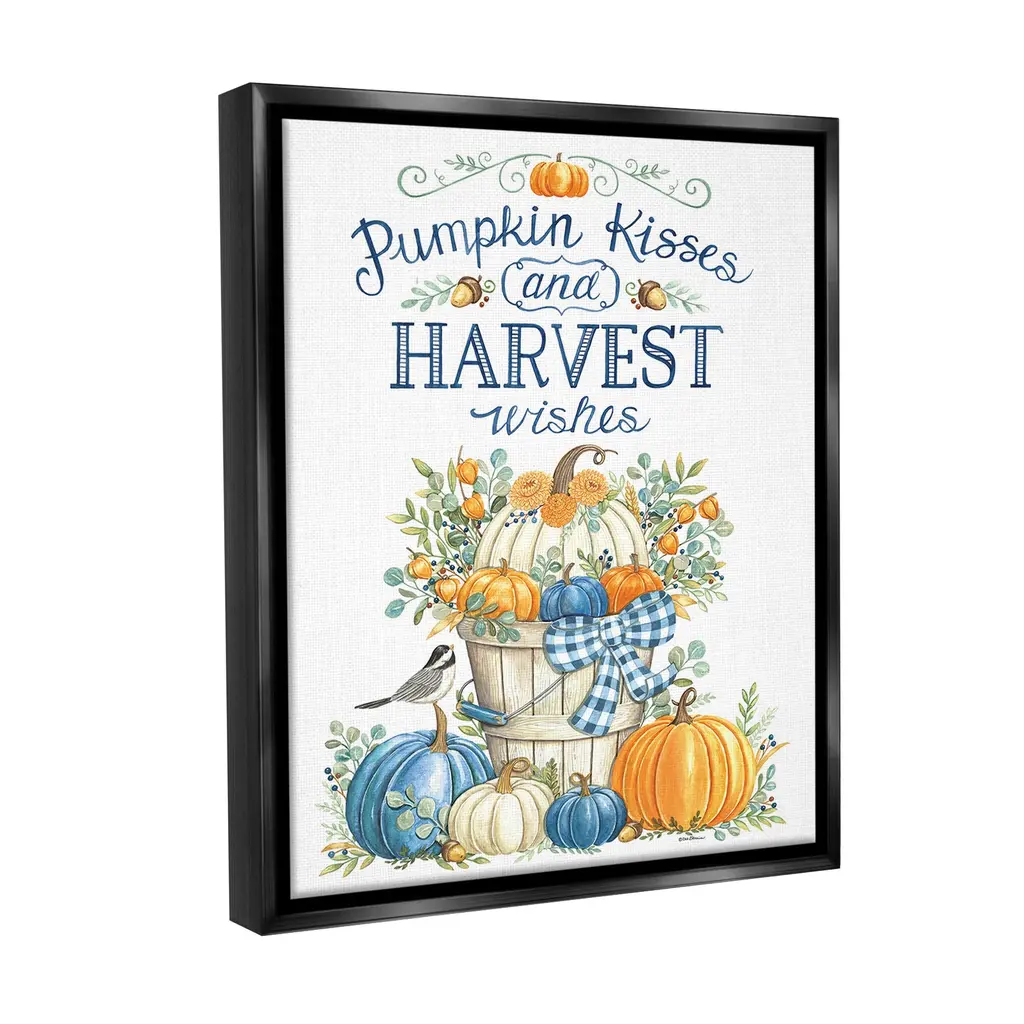 Elevate your home or office to the next level with Stupell Framed Floating Canvas Wall Art. Our premium hand-stretched canvas is mounted securely into a sturdy lightweight frame. The museum-style gap between the wrapped canvas and the box frame gives the illusion of floating artwork. Stupell Wall Art is made in the USA.Features: Dimensions: 17 x 1.7 x 21 Frame, 16 x 1.5 x 20 Canvas ArtFloating Frame Canvas Products are available in sizes 17"x21" and 25"x31". All Floating Frame Canvas Products have a 1.7" Depth.Wall Art is Ready to Hang with Hardware Free Hanging. No Installation required. For Easy Set Up Lean or Layer Artwork on Shelf or Against Wall. Artwork is Permently Fixed into the Frame.Our elevated 1.7" Thick Floating Frame is the perfect complement to our canvas style Wall Art. We use only the highest quality inks in house with industry leading printing solutions. Canvas is hand stretched over a durable wood foundation and then mounted securly into a Modern Box Frame. Made in the USA.Artwork Relates To: Nature, Country, Harvest, Plant, Fall, Autumn, Pumpkin, Phrase, Pattern, Acorn, Bird, Rustic, Pumpkin Kisses and Harvest WishesDesign by Deb Strain