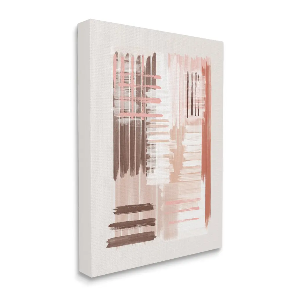 Stupell Hatched Pink & Brown Composition Canvas Wall Art Design By Jj Design House Llc - 30 X 40