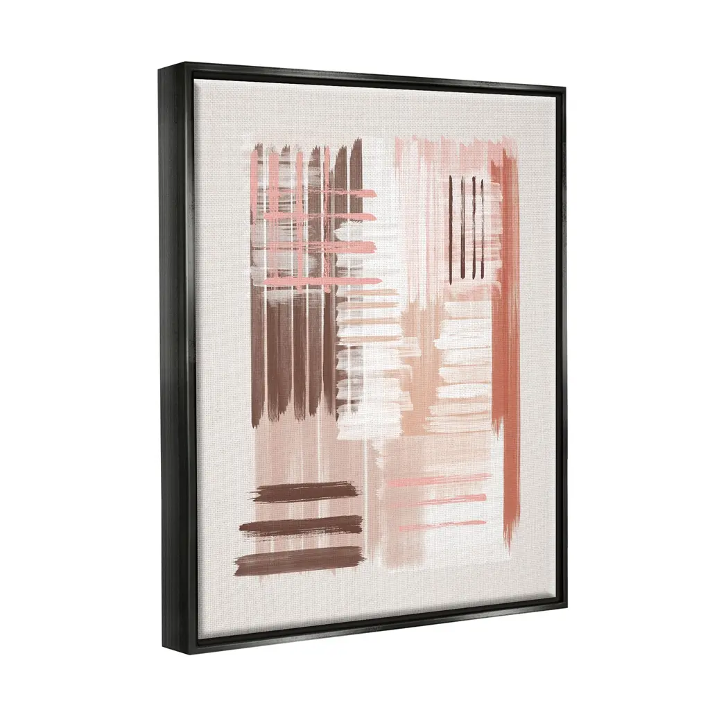 Stupell Hatched Pink & Brown Composition Framed Floater Canvas Wall Art Design By Jj Design House Llc - 17 X 21 - Black