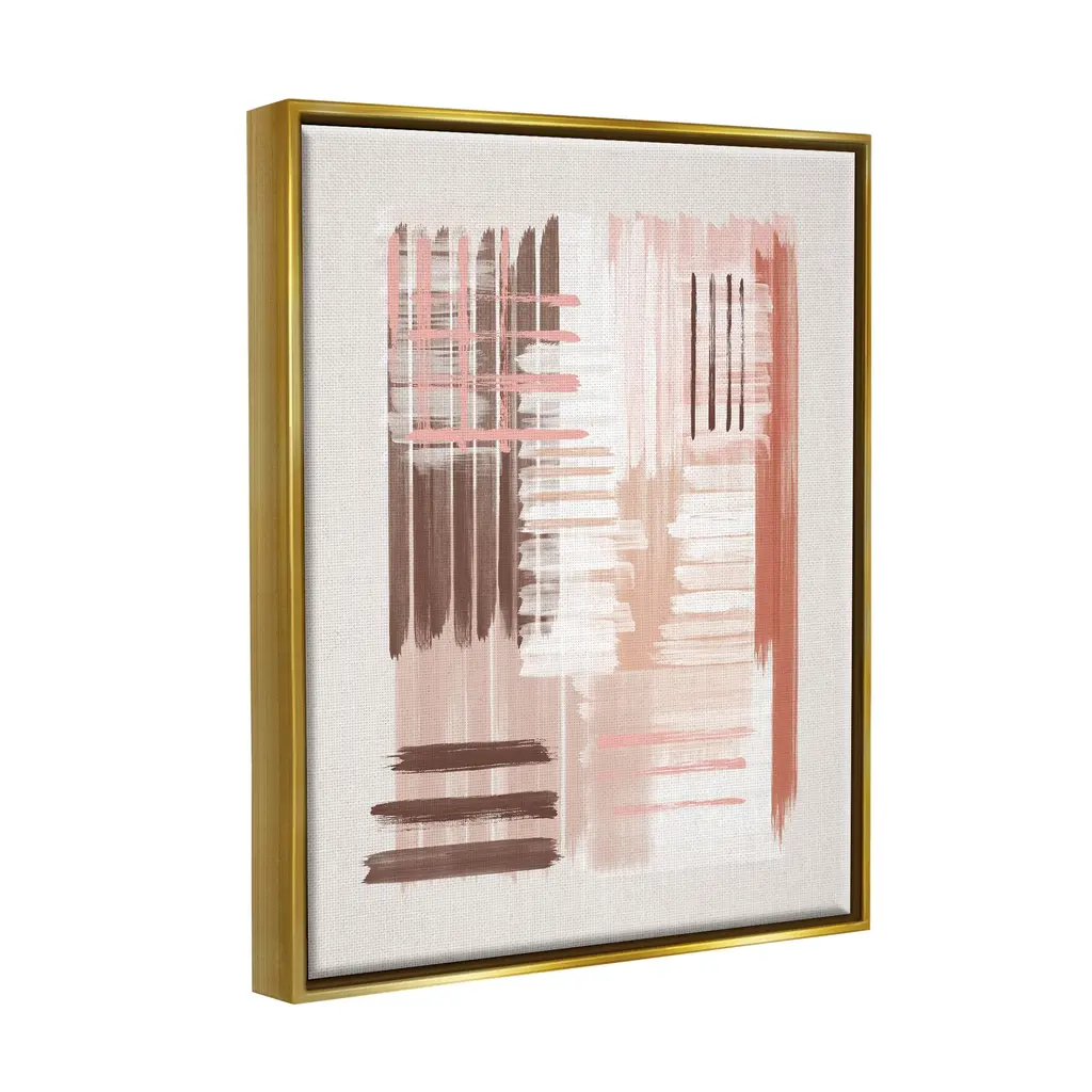 Stupell Hatched Pink & Brown Composition Framed Floater Canvas Wall Art Design By Jj Design House Llc - 17 X 21 - Gold