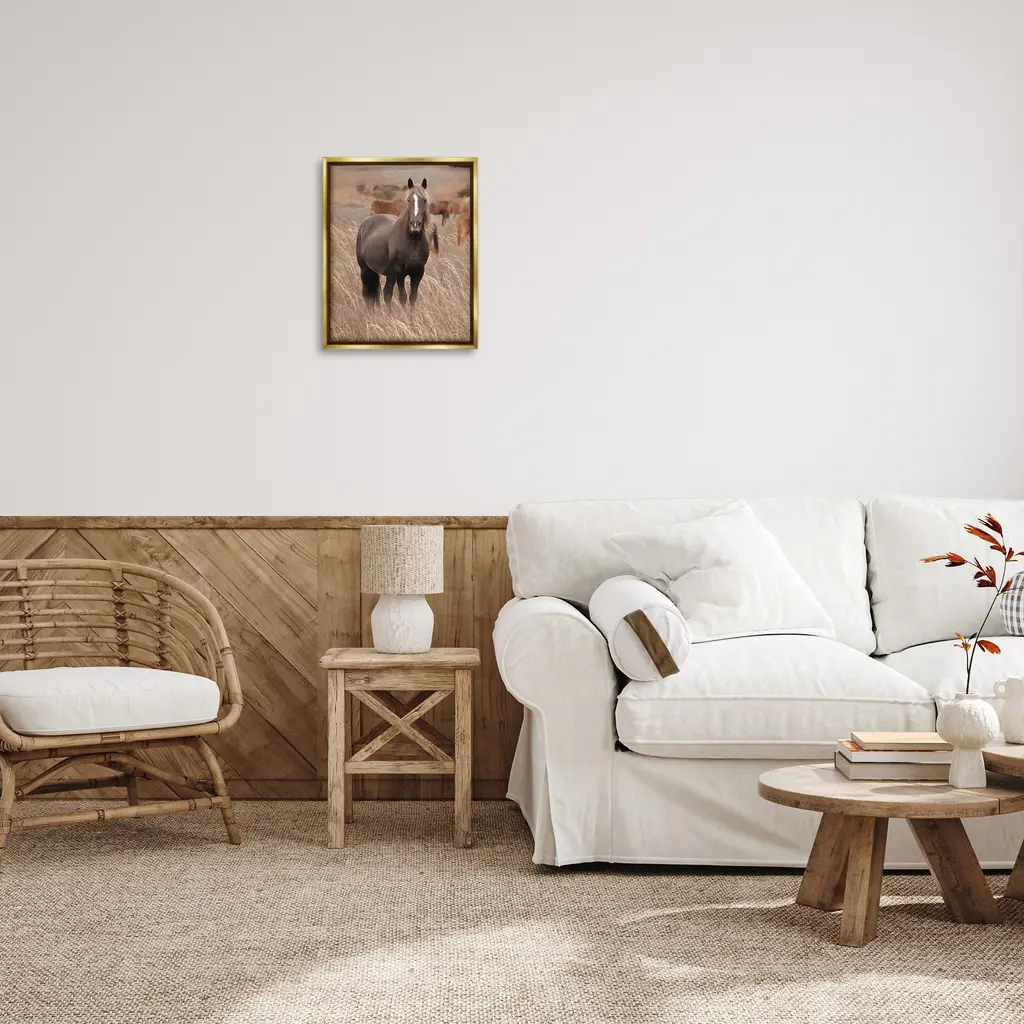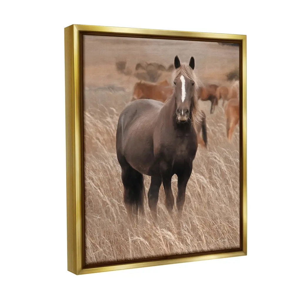 Stupell Hazy Day Horse Framed Floater Canvas Wall Art Design By Lori Deiter - 17 X 21 - Gold