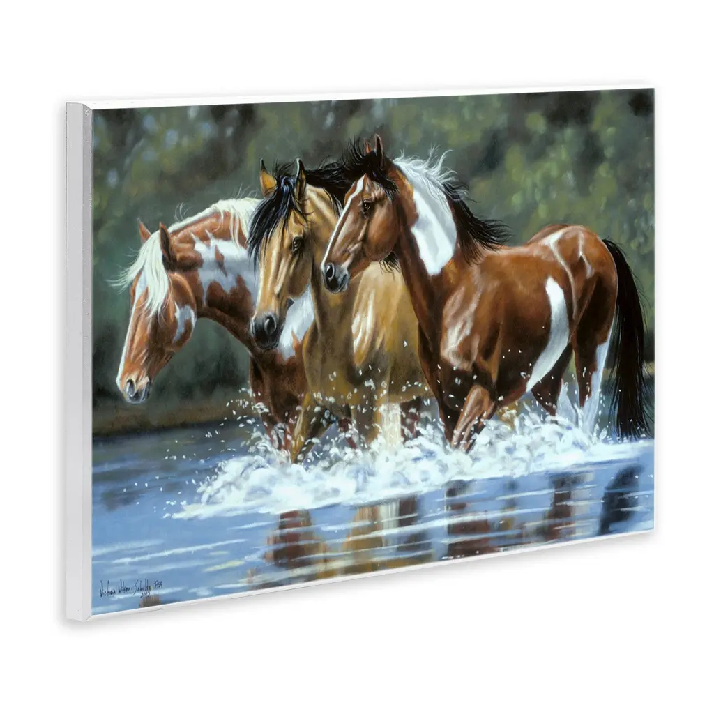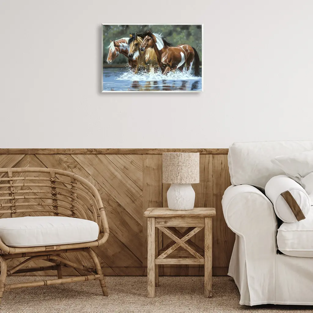Our wall plaques start as high-quality lithograph prints mounted on durable 0.5-inch thick MDF wood. Each piece is hand finished and comes with a fresh layer of white foil on the sides to give it a crisp, clean look. Plaques arrive ready to hang without installation and come with removable plastic corners to keep them from damage in transit. Stupell Wall Art is made in the USA.Features: Dimensions: 15 x 0.5 x 10 InchesWall Plaque Product Sizes Include 15"x10" and 19"x13". All wall plaque products have a 0.5" Depth. Wall Art is Ready to Hang with Hardware Free Hanging. No installation required. For Easy Set Up Lean or Layer Artwork on Shelf or Against Wall.All of our wall plaques start off as high quality lithograph prints that are then mounted on durable 0.5 inch thick MDF wood. Each piece is hand finished and comes with a fresh layer of foil on the sides to give it a crisp clean look. Made In USA.Artwork Relates To: Animal, Horse, Mammal, Stallion, Colt Horse, Wildlife, Nature, WaterDesign by Victoria Schultz