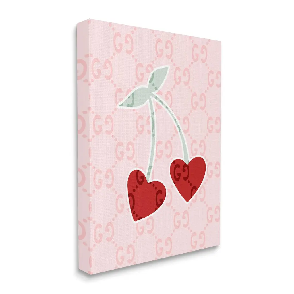 We create our stretched canvas to the highest standards. Using only the highest quality inks and canvas on Mimaki printers, we hand-cut and stretch each piece over a 1.5-inch thick wooden frame for hanging. As a result, the art comes ready to hang on the sturdy ledge with no installation required. Stupell Wall Art is made in the USA.Features: Dimensions: 16 x 1.5 x 20 InchesStretched Canvas Sizes Include Standard: 16 x 1.5 x 20 Large: 20 x 1.5 x 30 X-Large: 30 x 1.5 x 40 Oversized: 36 x 1.5 x 48Wall Art is Ready to Hang with Hardware Free Hanging. No installation required. For Easy Set Up Lean or Layer Artwork on Shelf or Against Wall.Our stretched canvas is created with the highest standards. We use only the highest quality inks and canvas on our in house Mimaki printers, and then hand cut and stretch each piece over a 1.5 inch thick wooden frame for hanging. Made In USA.Artwork Relates To: Food, Fruit, Plant, Cherry, Heart, Pattern, Glam, FashionDesign by Lil' Rue