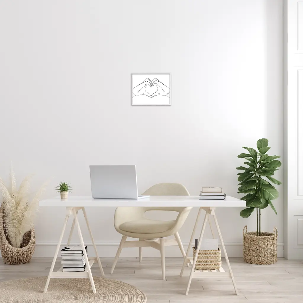 Add dimension to any room with our textured Framed Giclee Artwork. Our framed artwork is securely mounted into a 1.5-inch thick wood grain frame and ready to hang. Frames are available in three alluring styles: black, gray farmhouse and white. In addition, you should check out our oversized options if you want a statement piece. Stupell Wall Art is made in the USA.Features: Dimensions: 14 x 1.5 x 11 FramedFramed Giclee Products are available in the sizes 14"x11", 20"x16" or 30"x24". All Framed Giclee Products have a 1.5" Depth. Wall Art is Ready to Hang with Hardware Free Hanging. No installation required. For Easy Set Up Lean or Layer Artwork on Shelf or Against Wall.Our giclée prints are carefully mounted on a durable MDF backing, and then perfectly finished in a 1.5 inch thick woodgrain frame. Mounted frame colors include black, gray farmhouse and white. Made In USA.Artwork Relates To: Symbol, Hands, Love, Heart, MinimalDesign by Martina Pavlova