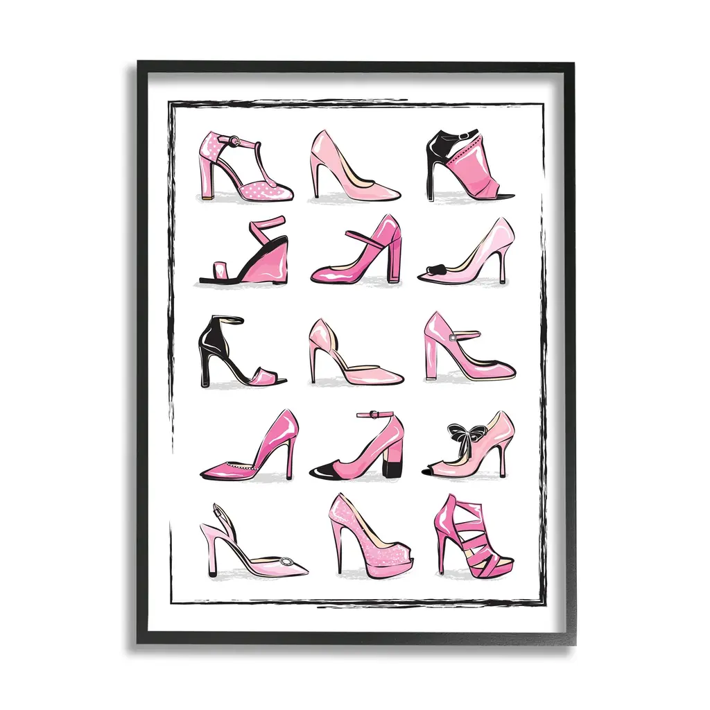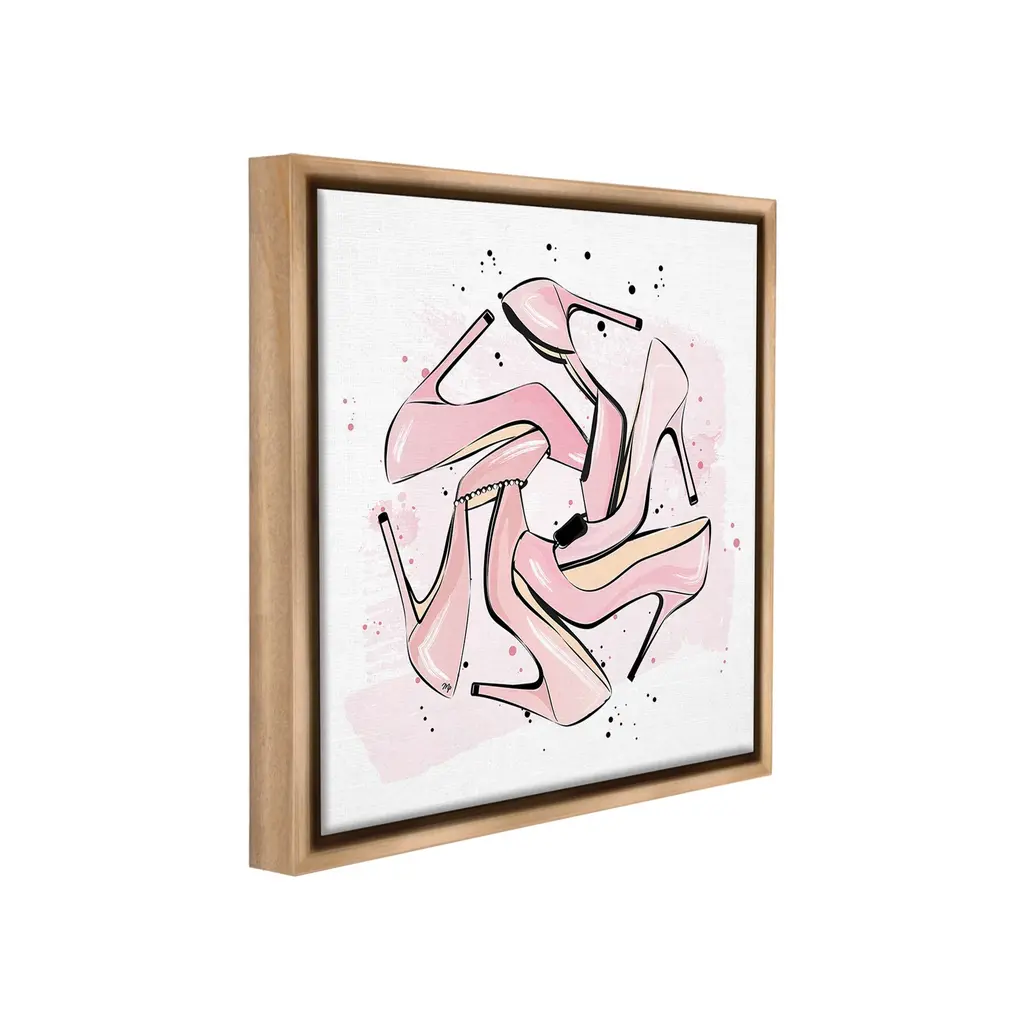 Elevate your home or office to the next level with Stupell Framed Floating Canvas Wall Art. Our premium hand-stretched canvas is mounted securely into a sturdy lightweight frame. The museum-style gap between the wrapped canvas and the box frame gives the illusion of floating artwork. Stupell Wall Art is made in the USA.Features: Dimensions: 18 x 1.7 x 18 Frame, 17 x 1.5 x 17 Canvas ArtFloating Frame Canvas Products are available in sizes 18"x18" and 25"x25". All Floating Frame Canvas Products have a 1.7" Depth.Wall Art is Ready to Hang with Hardware Free Hanging. No Installation required. For Easy Set Up Lean or Layer Artwork on Shelf or Against Wall. Artwork is Permently Fixed into the Frame.Our elevated 1.7" Thick Floating Frame is the perfect complement to our canvas style Wall Art. We use only the highest quality inks in house with industry leading printing solutions. Canvas is hand stretched over a durable wood foundation and then mounted securly into a Modern Box Frame. Made in the USA.Artwork Relates To: Shoes, Heels, Fashion, Glam, Pink, Pastel, Modern, PatternDesign by Martina Pavlova