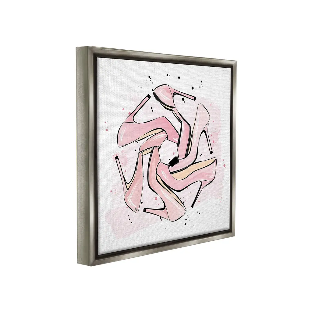 Elevate your home or office to the next level with Stupell Framed Floating Canvas Wall Art. Our premium hand-stretched canvas is mounted securely into a sturdy lightweight frame. The museum-style gap between the wrapped canvas and the box frame gives the illusion of floating artwork. Stupell Wall Art is made in the USA.Features: Dimensions: 18 x 1.7 x 18 Frame, 17 x 1.5 x 17 Canvas ArtFloating Frame Canvas Products are available in sizes 18"x18" and 25"x25". All Floating Frame Canvas Products have a 1.7" Depth.Wall Art is Ready to Hang with Hardware Free Hanging. No Installation required. For Easy Set Up Lean or Layer Artwork on Shelf or Against Wall. Artwork is Permently Fixed into the Frame.Our elevated 1.7" Thick Floating Frame is the perfect complement to our canvas style Wall Art. We use only the highest quality inks in house with industry leading printing solutions. Canvas is hand stretched over a durable wood foundation and then mounted securly into a Modern Box Frame. Made in the USA.Artwork Relates To: Shoes, Heels, Fashion, Glam, Pink, Pastel, Modern, PatternDesign by Martina Pavlova