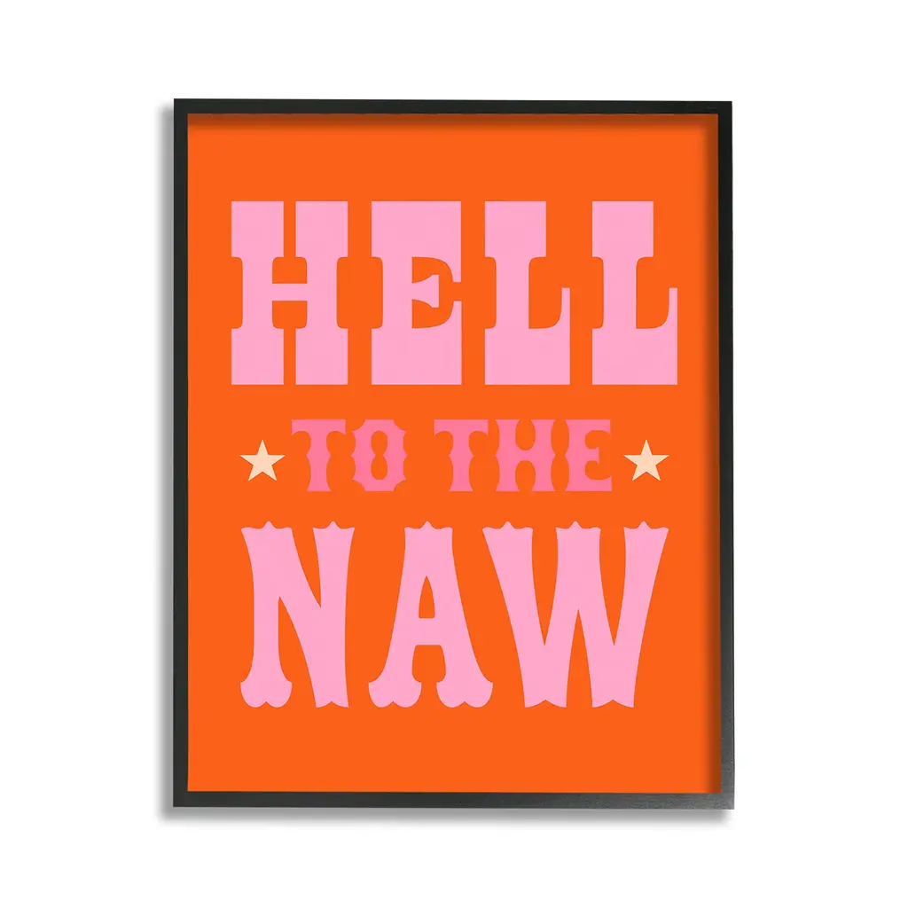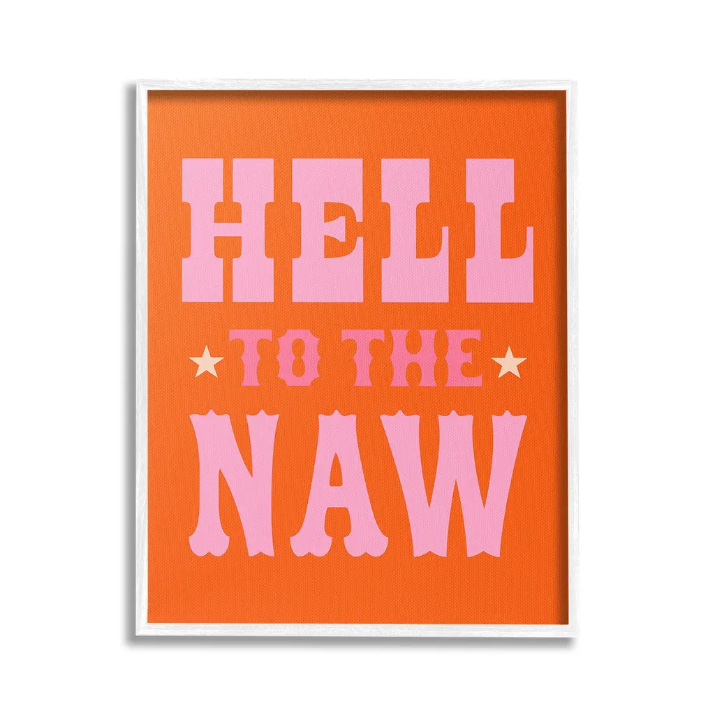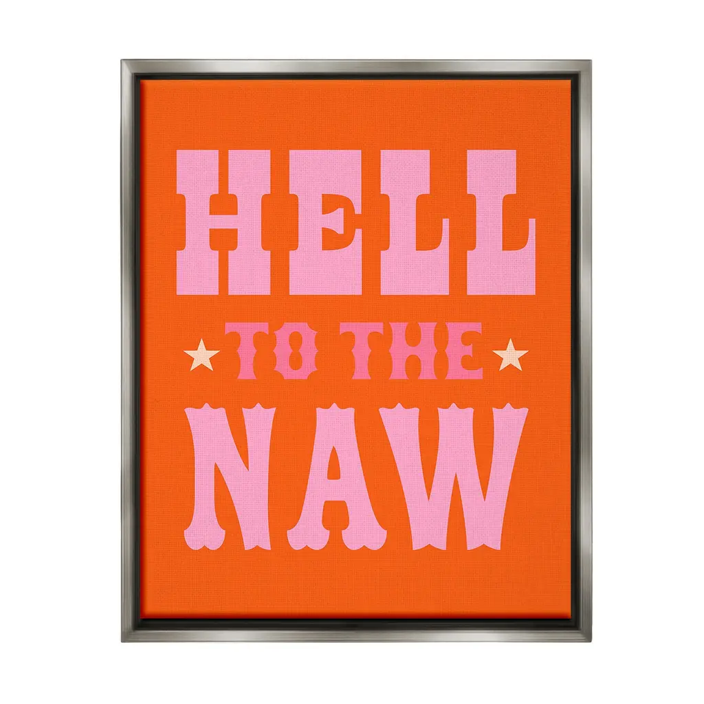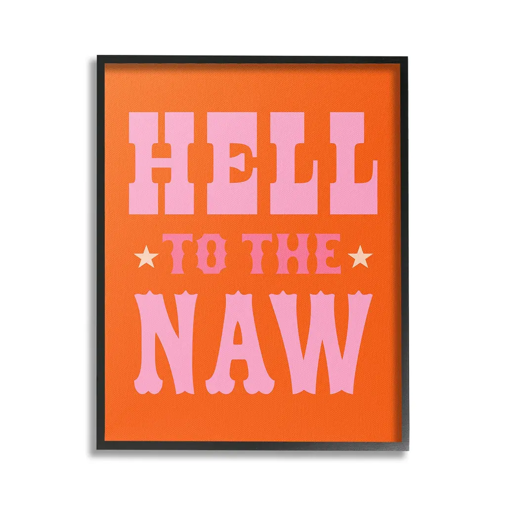 Elevate your home or office to the next level with Stupell Framed Floating Canvas Wall Art. Our premium hand-stretched canvas is mounted securely into a sturdy lightweight frame. The museum-style gap between the wrapped canvas and the box frame gives the illusion of floating artwork. Stupell Wall Art is made in the USA.Features: Dimensions: 17 x 1.7 x 21 Frame, 16 x 1.5 x 20 Canvas ArtFloating Frame Canvas Products are available in sizes 17"x21" and 25"x31". All Floating Frame Canvas Products have a 1.7" Depth.Wall Art is Ready to Hang with Hardware Free Hanging. No Installation required. For Easy Set Up Lean or Layer Artwork on Shelf or Against Wall. Artwork is Permently Fixed into the Frame.Our elevated 1.7" Thick Floating Frame is the perfect complement to our canvas style Wall Art. We use only the highest quality inks in house with industry leading printing solutions. Canvas is hand stretched over a durable wood foundation and then mounted securly into a Modern Box Frame. Made in the USA.Artwork Relates To: Animal, Horse, Mammal, Saddle, Equestrian, Rodeo, Country, Southwestern, Cowboy, Cowgirl, Phrase, Humor, Hell to the NawDesign by Victoria Barnes