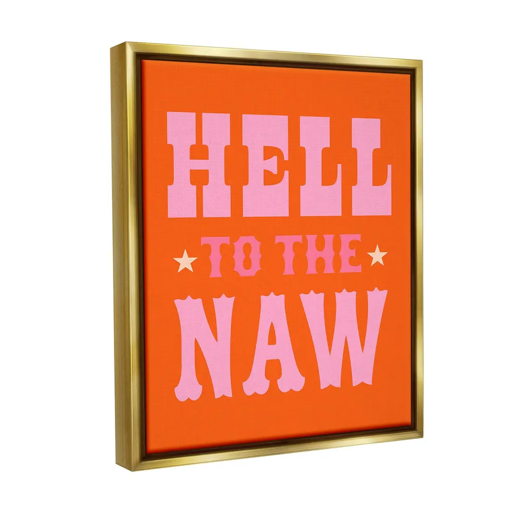 Stupell Hell To The Naw Phrase Framed Floater Canvas Wall Art Design By Victoria Barnes - 17 X 21 - Gold
