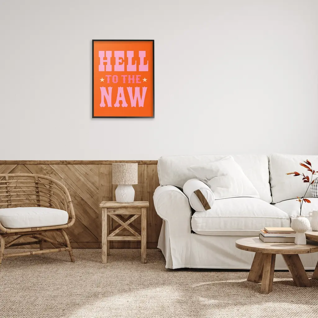 Add dimension to any room with our textured Framed Giclee Artwork. Our framed artwork is securely mounted into a 1.5-inch thick wood grain frame and ready to hang. Frames are available in three alluring styles: black, gray farmhouse and white. In addition, you should check out our oversized options if you want a statement piece. Stupell Wall Art is made in the USA.Features: Dimensions: 11 x 1.5 x 14 FramedFramed Giclee Products are available in the sizes 11"x14", 16"x20" or 24"x30". All Framed Giclee Products have a 1.5" Depth. Wall Art is Ready to Hang with Hardware Free Hanging. No installation required. For Easy Set Up Lean or Layer Artwork on Shelf or Against Wall.Our giclée prints are carefully mounted on a durable MDF backing, and then perfectly finished in a 1.5 inch thick woodgrain frame. Mounted frame colors include black, gray farmhouse and white. Made In USA.Artwork Relates To: Animal, Horse, Mammal, Saddle, Equestrian, Rodeo, Country, Southwestern, Cowboy, Cowgirl, Phrase, Humor, Hell to the NawDesign by Victoria Barnes