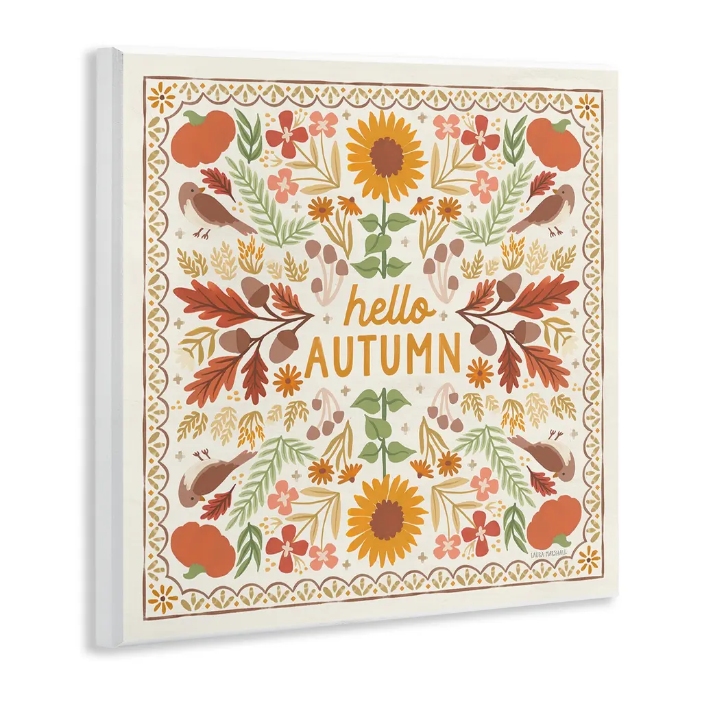 Stupell Hello Autumn Pattern Wall Plaque Art Design By Laura Marshall - 12 X 12