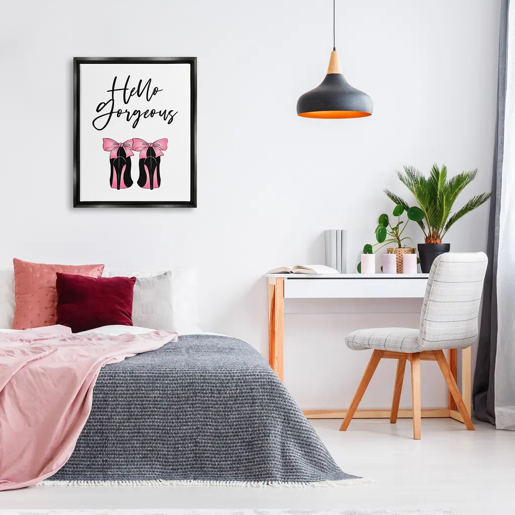 Add dimension to any room with our textured Framed Giclee Artwork. Our framed artwork is securely mounted into a 1.5-inch thick wood grain frame and ready to hang. Frames are available in three alluring styles: black, gray farmhouse and white. In addition, you should check out our oversized options if you want a statement piece. Stupell Wall Art is made in the USA.Features: Dimensions: 11 x 1.5 x 14 FramedFramed Giclee Sizes Include Standard: 11 x 1.5 x 14 Large: 16 x 1.5 x 20 Oversized: 24 x 1.5 x 30Wall Art is Ready to Hang - No Installation or Hardware Needed. For Easy Set Up Lean or Layer Artwork on Shelf or Against Wall.Our giclée prints are carefully mounted on a durable MDF backing, and then perfectly finished in a 1.5 inch thick woodgrain frame. Mounted frame colors include black, gray farmhouse and white. Made In USA.Artwork Relates To: Shoe, High Heel, Fashion, Glam, Bow, Hello GorgeousDesign by Martina Pavlova