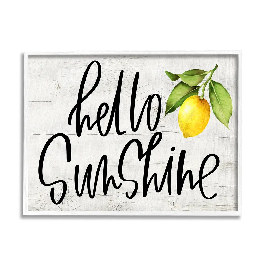 Stupell Hello Sunshine Expression Soft Country Lemon Branch Framed Wall Art - 16 X 20 - White