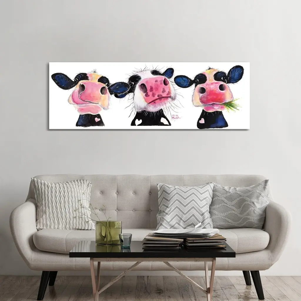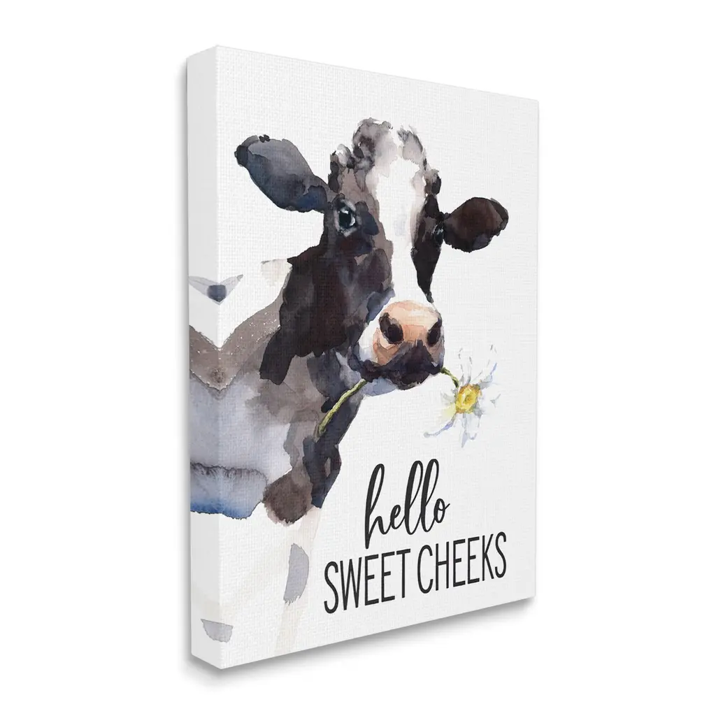 Proudly made in the USA, Our stretched canvas is created with the highest standards. We use only the highest quality inks and canvas on our in house Mimaki printers, and then hand cut and stretch each piece over a 1.5 inch thick wooden frame for hanging. The art comes ready to hang with no installation required.Features: Wall Art is Ready to Hang - No Installation or Hardware Needed. For Easy Set Up Lean or Layer Artwork on Shelf or Against Wall.Our stretched canvas is created with the highest standards. We use only the highest quality inks and canvas on our in house Mimaki printers, and then hand cut and stretch each piece over a 1.5 inch thick wooden frame for hanging. Made In USA.Artwork Relates To: Cow; Cattle; Mammal; Animal; Dairy Cow; hello SWEET CHEEKSDesign by Lettered and Lined