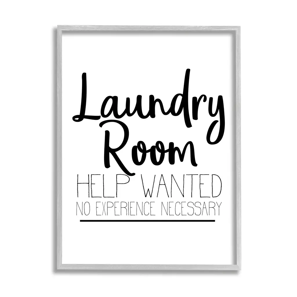 Stupell Help Wanted Laundry Room Sign Bold Black White Framed Wall Art - 11 X 14 - Black