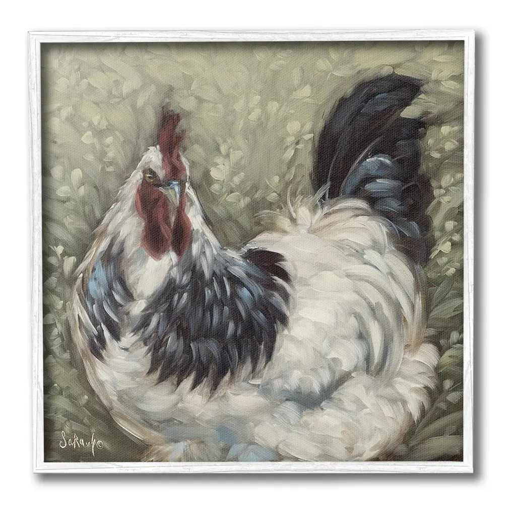 Add dimension to any room with our textured Framed Giclee Artwork. Our framed artwork is securely mounted into a 1.5-inch thick wood grain frame and ready to hang. Frames are available in three alluring styles: black, gray farmhouse and white. In addition, you should check out our oversized options if you want a statement piece. Stupell Wall Art is made in the USA.Features: Dimensions: 12 x 1.5 x 12 FramedFramed Giclee Product Sizes Include 12"x12", 17"x17", and 24"x24". Framed Giclee Products have a 1.5" Depth. Wall Art is Ready to Hang with Hardware Free Hanging. No installation required. For Easy Set Up Lean or Layer Artwork on Shelf or Against Wall.Our giclée prints are carefully mounted on a durable MDF backing, and then perfectly finished in a 1.5 inch thick woodgrain frame. Mounted frame colors include black, gray farmhouse and white. Made In USA.Artwork Relates To: Animal, Bird, Chicken, Rooster, Hen, Abstract, Modern, Farm, Country, PatternDesign by Sara G. Designs