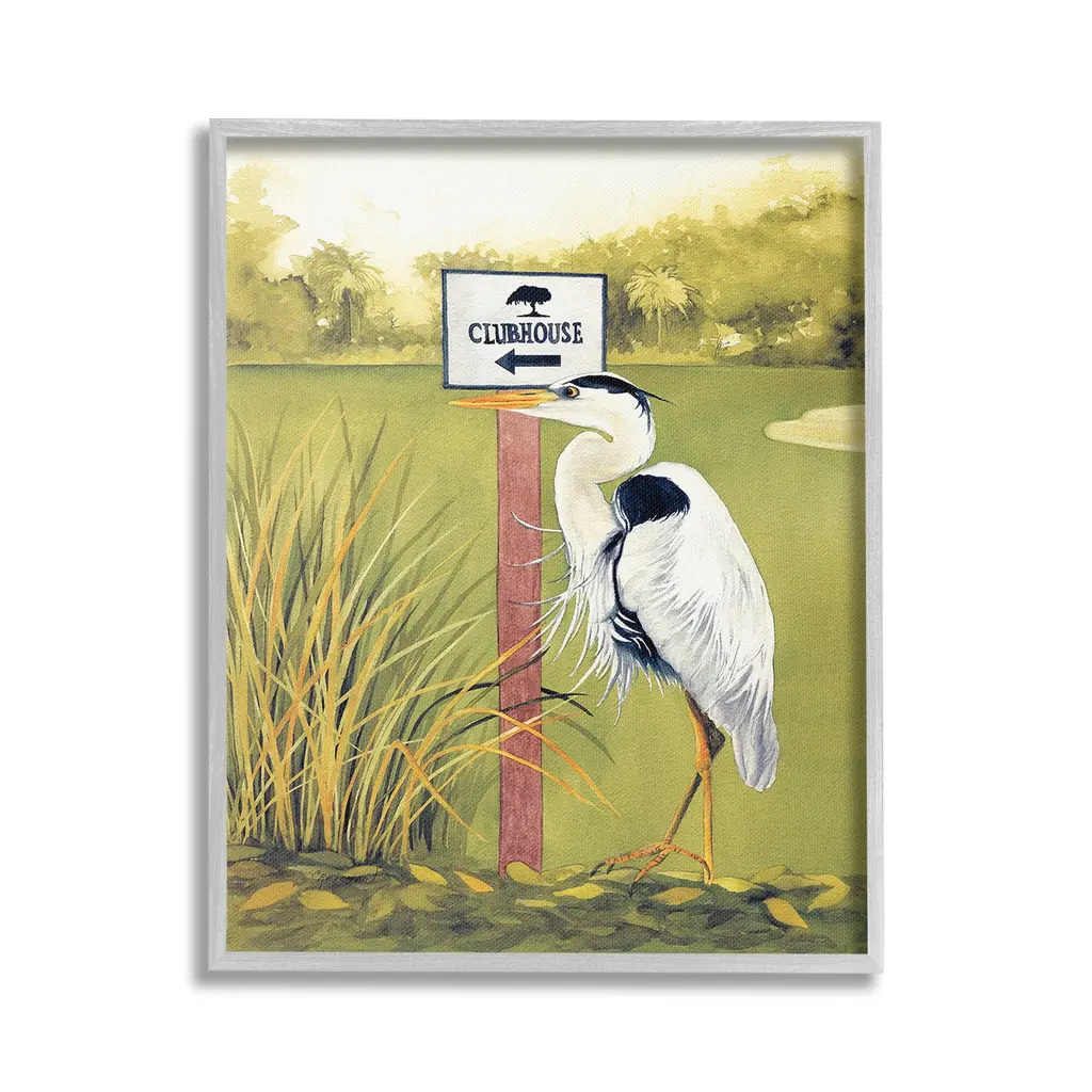 Stupell Heron & Clubhouse Sign Framed Floater Canvas Wall Art Design By Christine Reichow - 17 X 21 - Grey
