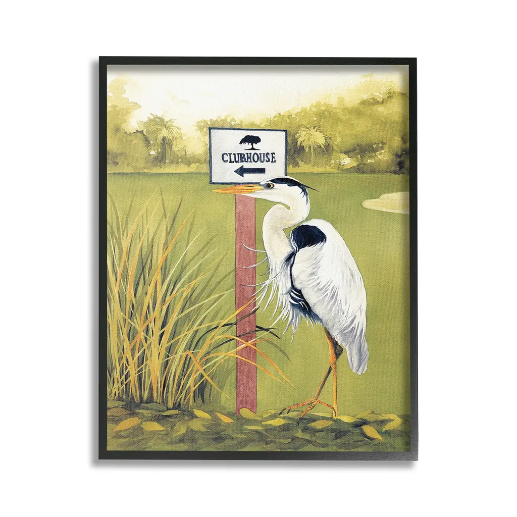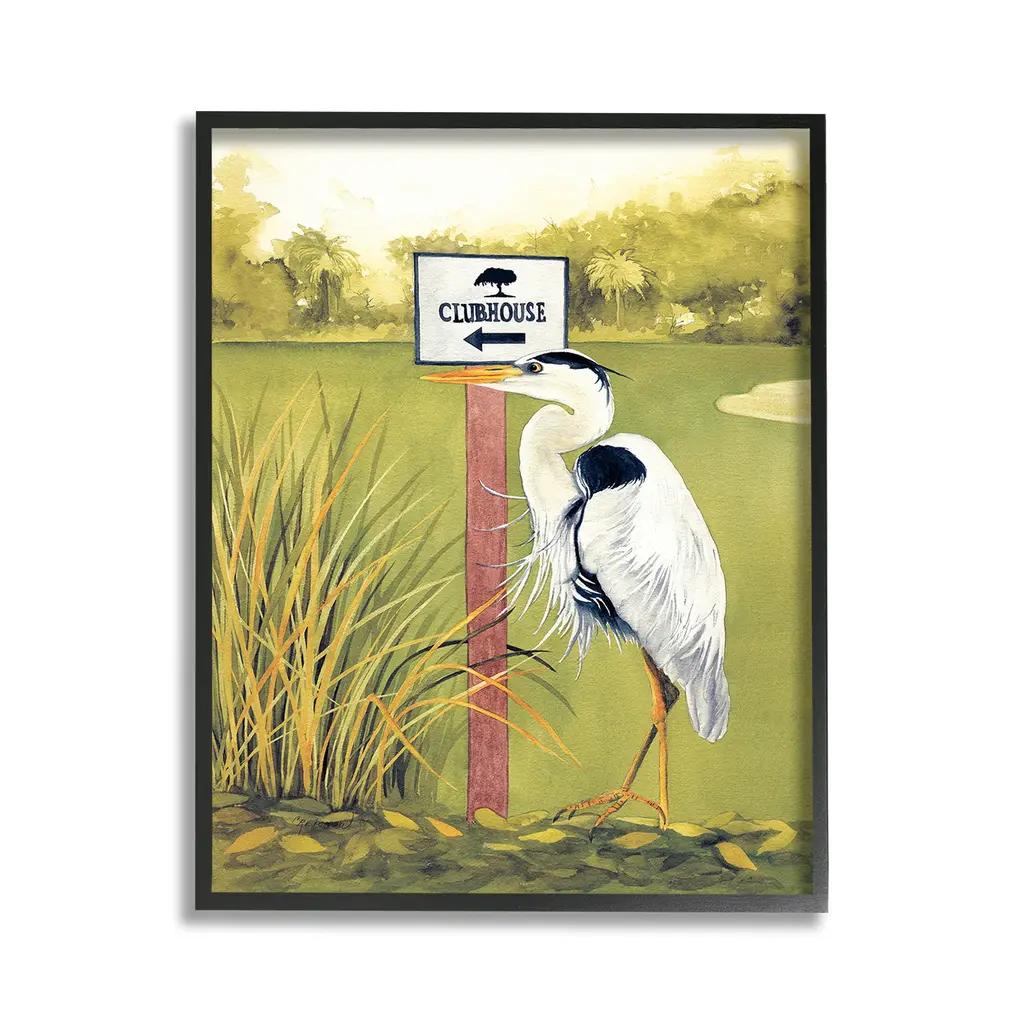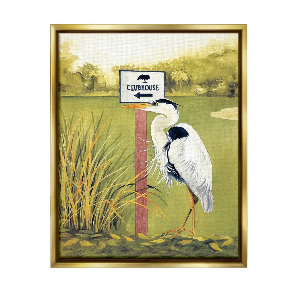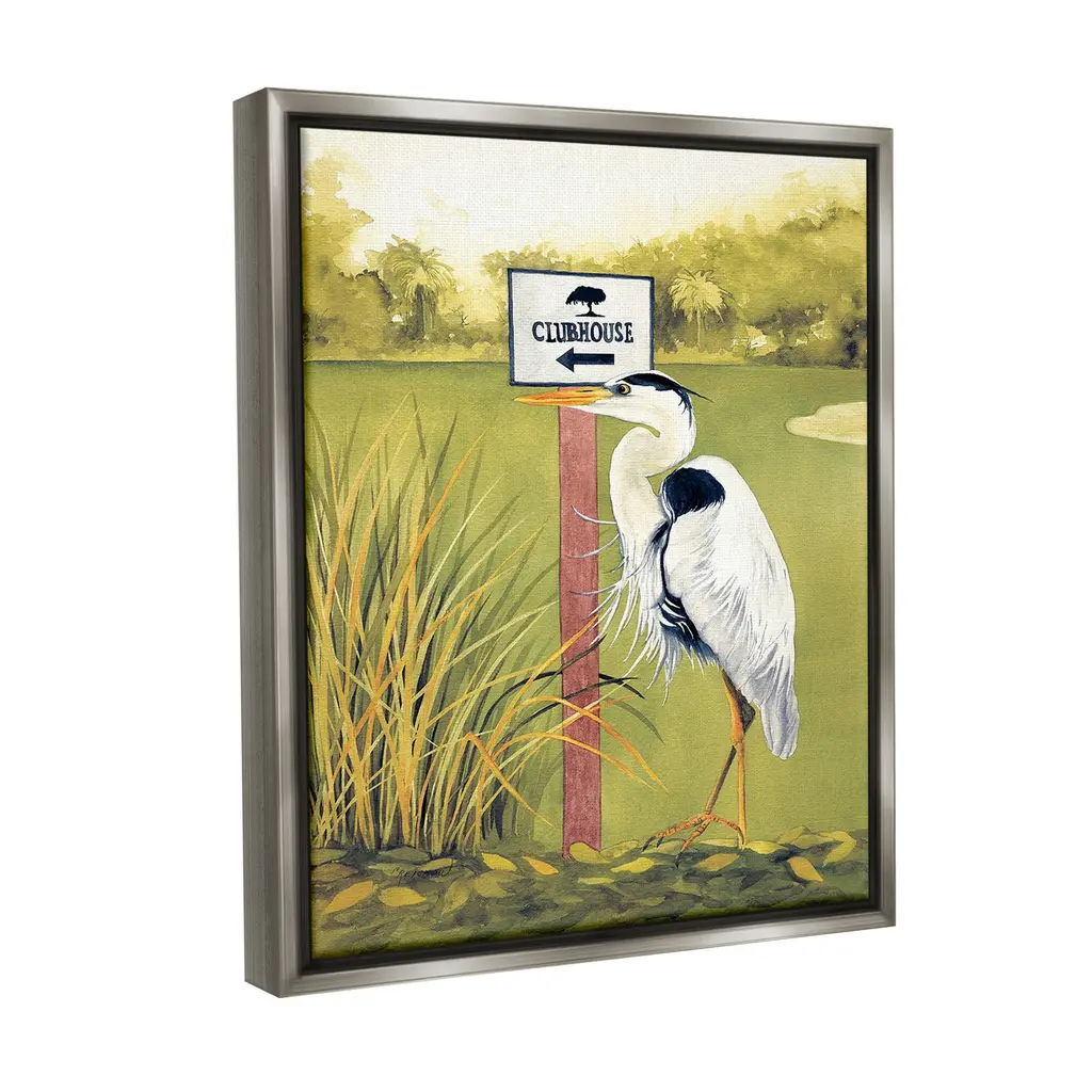 Elevate your home or office to the next level with Stupell Framed Floating Canvas Wall Art. Our premium hand-stretched canvas is mounted securely into a sturdy lightweight frame. The museum-style gap between the wrapped canvas and the box frame gives the illusion of floating artwork. Stupell Wall Art is made in the USA.Features: Dimensions: 17 x 1.7 x 21 Frame, 16 x 1.5 x 20 Canvas ArtFloating Frame Canvas Products are available in sizes 17"x21" and 25"x31". All Floating Frame Canvas Products have a 1.7" Depth.Wall Art is Ready to Hang with Hardware Free Hanging. No Installation required. For Easy Set Up Lean or Layer Artwork on Shelf or Against Wall. Artwork is Permently Fixed into the Frame.Our elevated 1.7" Thick Floating Frame is the perfect complement to our canvas style Wall Art. We use only the highest quality inks in house with industry leading printing solutions. Canvas is hand stretched over a durable wood foundation and then mounted securly into a Modern Box Frame. Made in the USA.Artwork Relates To: Animal, Bird, Waterfowl, Heron, Crane Bird, Stork, Egret, Landscape, Field, Golf, Sport, Golf Course, ClubhouseDesign by Christine Reichow