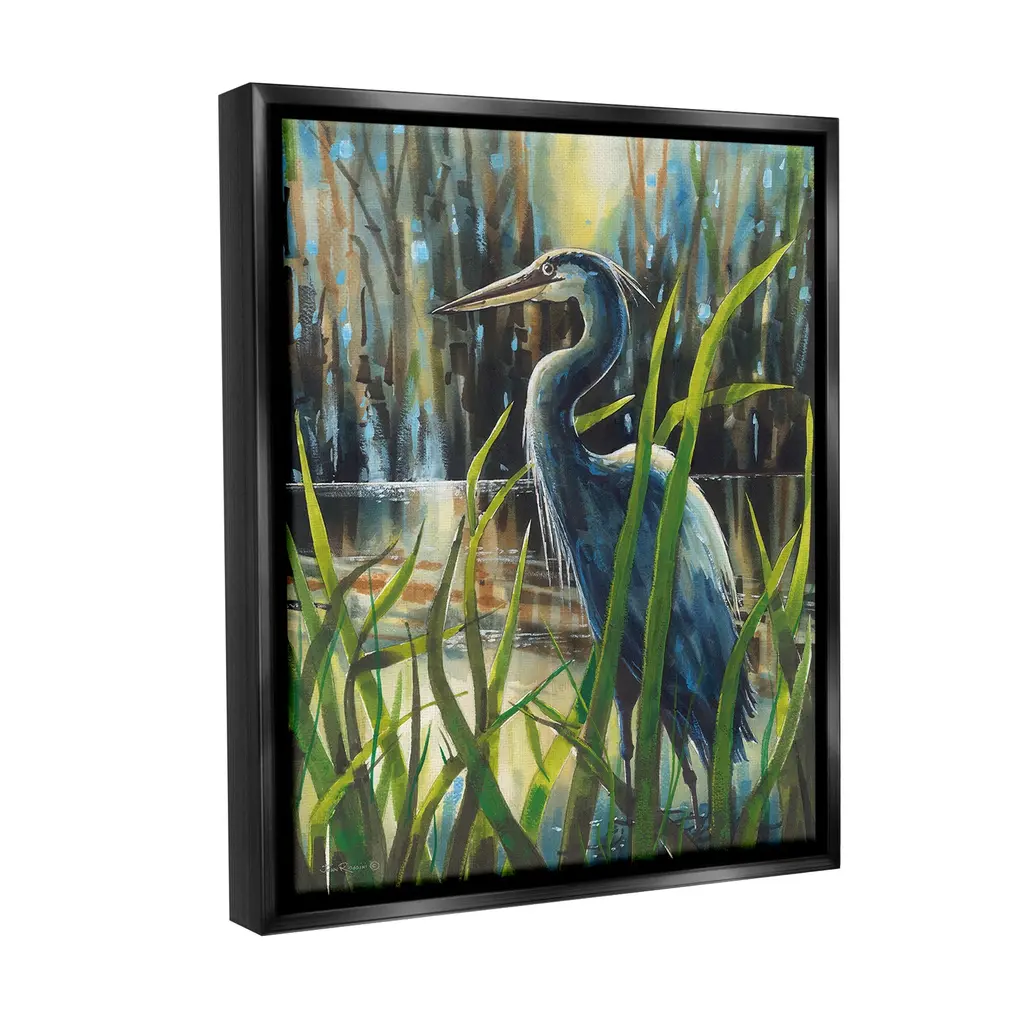 Elevate your home or office to the next level with Stupell Framed Floating Canvas Wall Art. Our premium hand-stretched canvas is mounted securely into a sturdy lightweight frame. The museum-style gap between the wrapped canvas and the box frame gives the illusion of floating artwork. Stupell Wall Art is made in the USA.Features: Dimensions: 17 x 1.7 x 21 Frame, 16 x 1.5 x 20 Canvas ArtFloating Frame Canvas Products are available in sizes 17"x21" and 25"x31". All Floating Frame Canvas Products have a 1.7" Depth.Wall Art is Ready to Hang with Hardware Free Hanging. No Installation required. For Easy Set Up Lean or Layer Artwork on Shelf or Against Wall. Artwork is Permently Fixed into the Frame.Our elevated 1.7" Thick Floating Frame is the perfect complement to our canvas style Wall Art. We use only the highest quality inks in house with industry leading printing solutions. Canvas is hand stretched over a durable wood foundation and then mounted securly into a Modern Box Frame. Made in the USA.Artwork Relates To: Animal, Bird, Waterfowl, Crane Bird, Land, Nature, Plant, Water, Heron, TraditionalDesign by John Rossini
